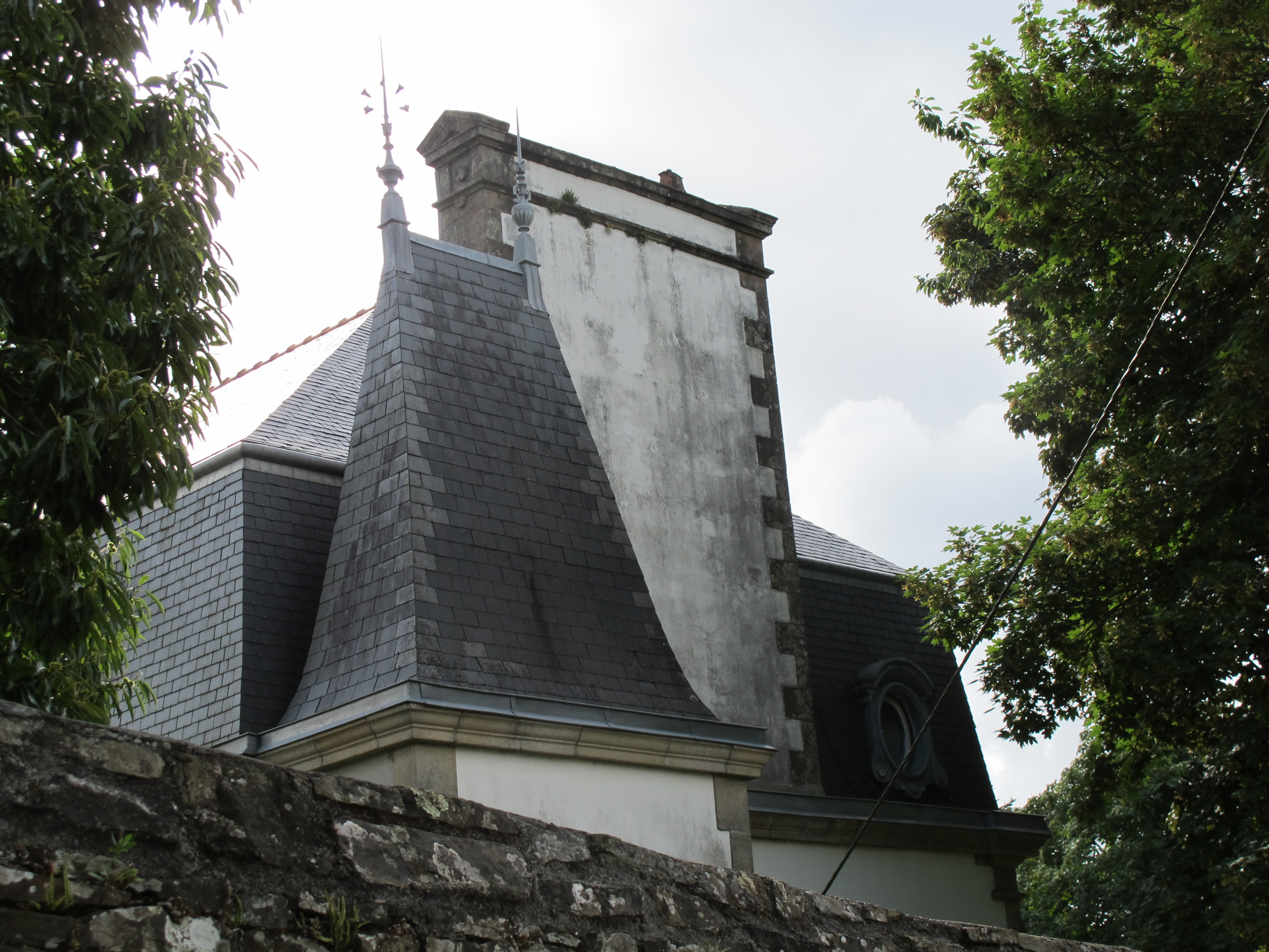 31, rue Amiral Bauguen, détail de la toiture à croupe et à pavillon, souche de cheminéeImmatriculation
