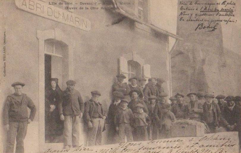 Carte postale. Ile de Sein, devant l'abri du marin. Ed. Villard (1900)Immatriculation
