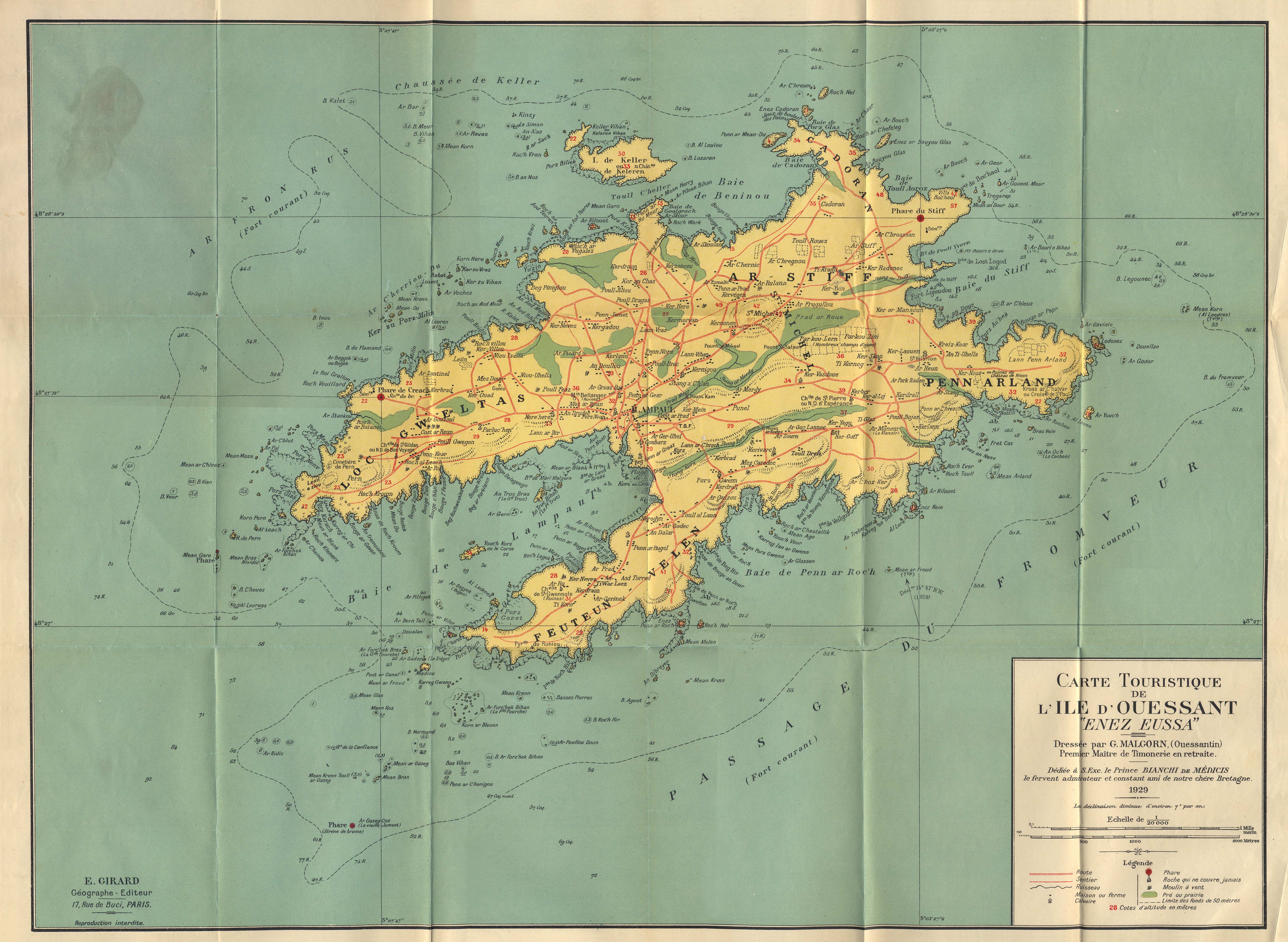 Carte touristique de Ouessant dressée en 1929 par G. MalgornImmatriculation