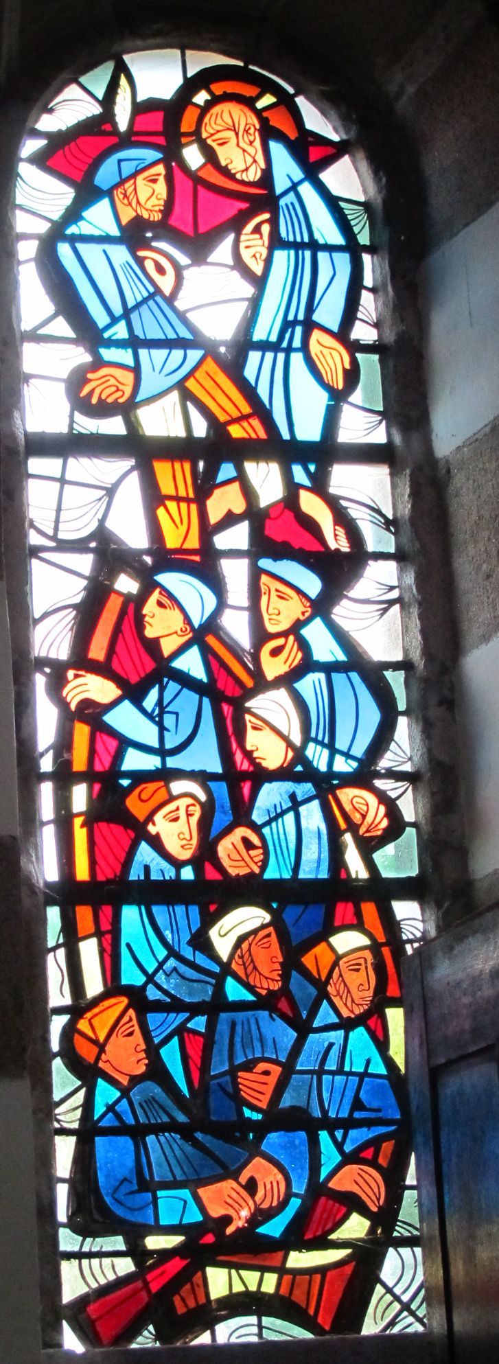 Verrière 7 (verrière figurée, verrière à personnages) (baies 0 à 16), église paroissiale Saint-Collodan, Saint-Guénolé (île de Sein)