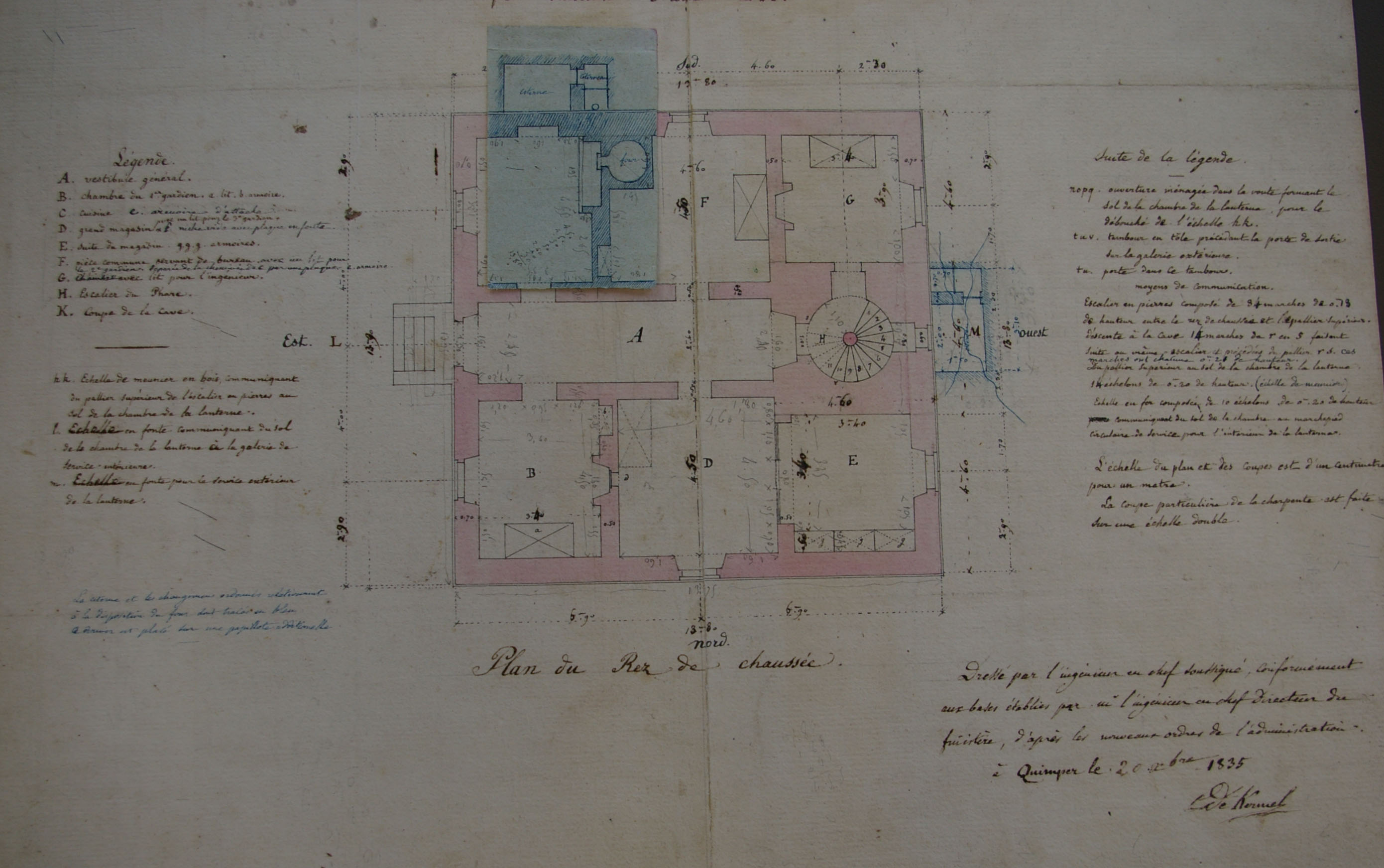 Plan du phare de Penfret, rez-de-chaussée, signé de Kermel, 1835Immatriculation