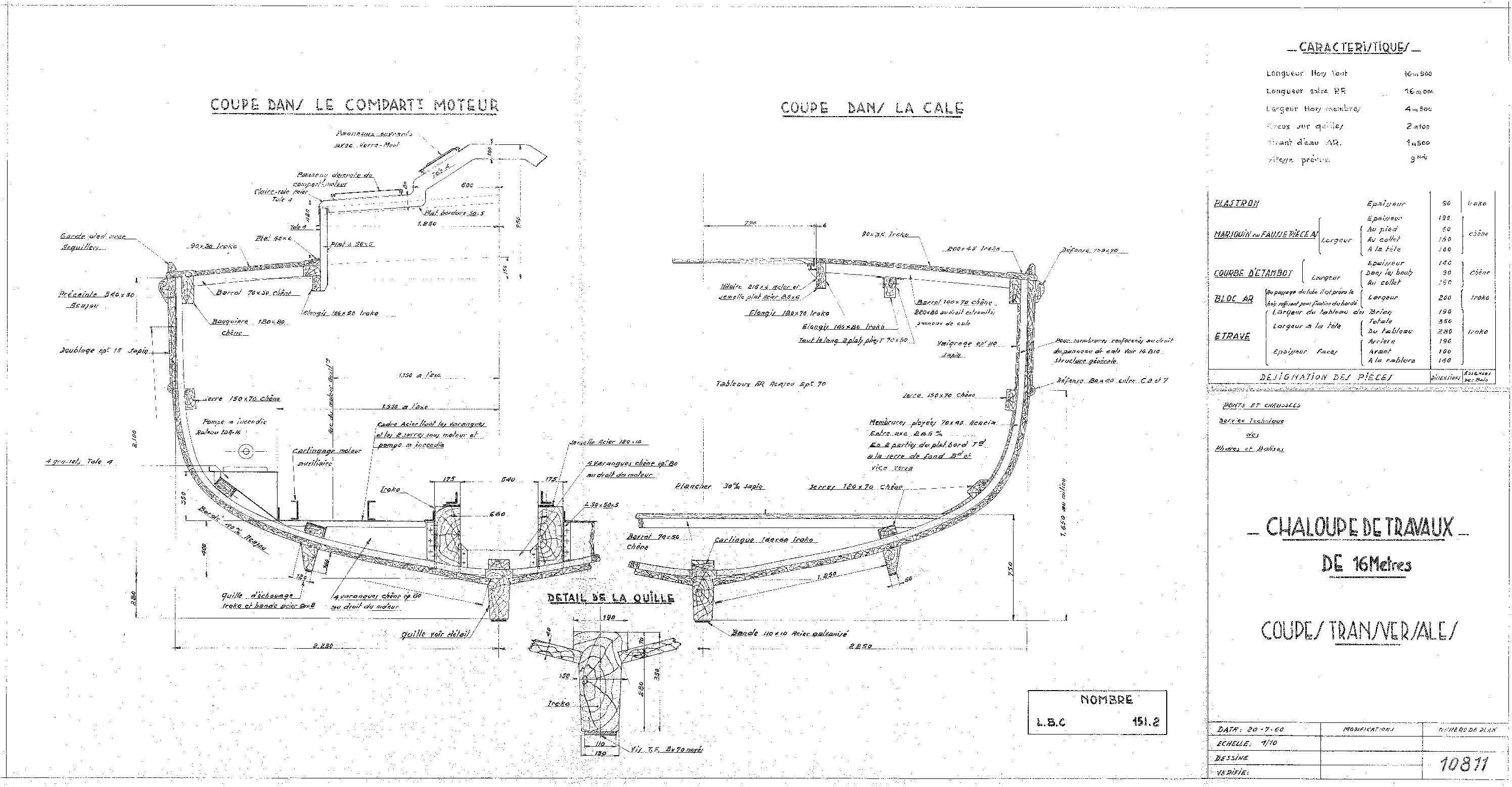Coupe transversale de la chaloupe de travaux de 16mImmatriculation