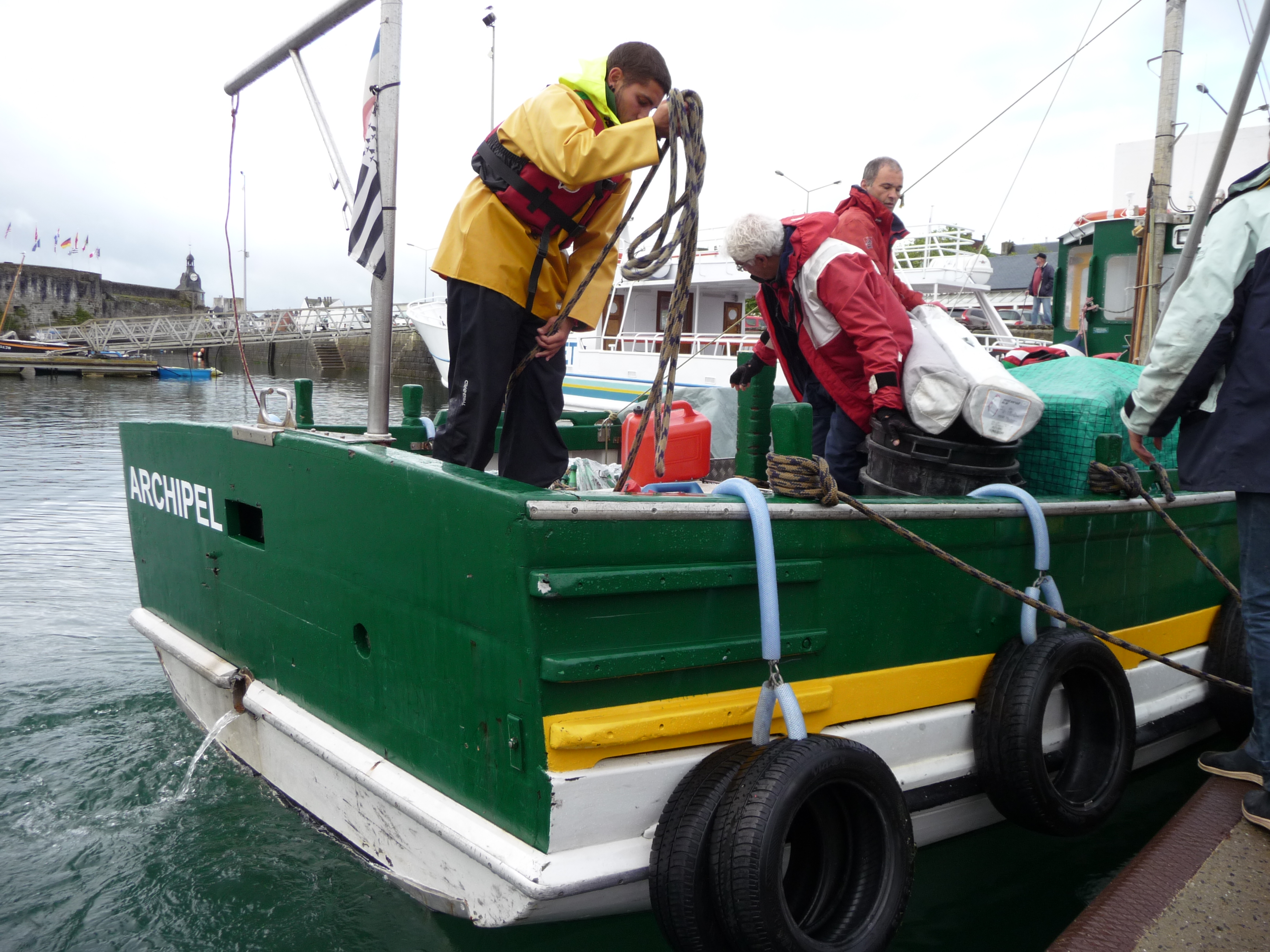Archipel - arrivée à quai - vue du tableau arrière -Concarneau -mai 2014Immatriculation