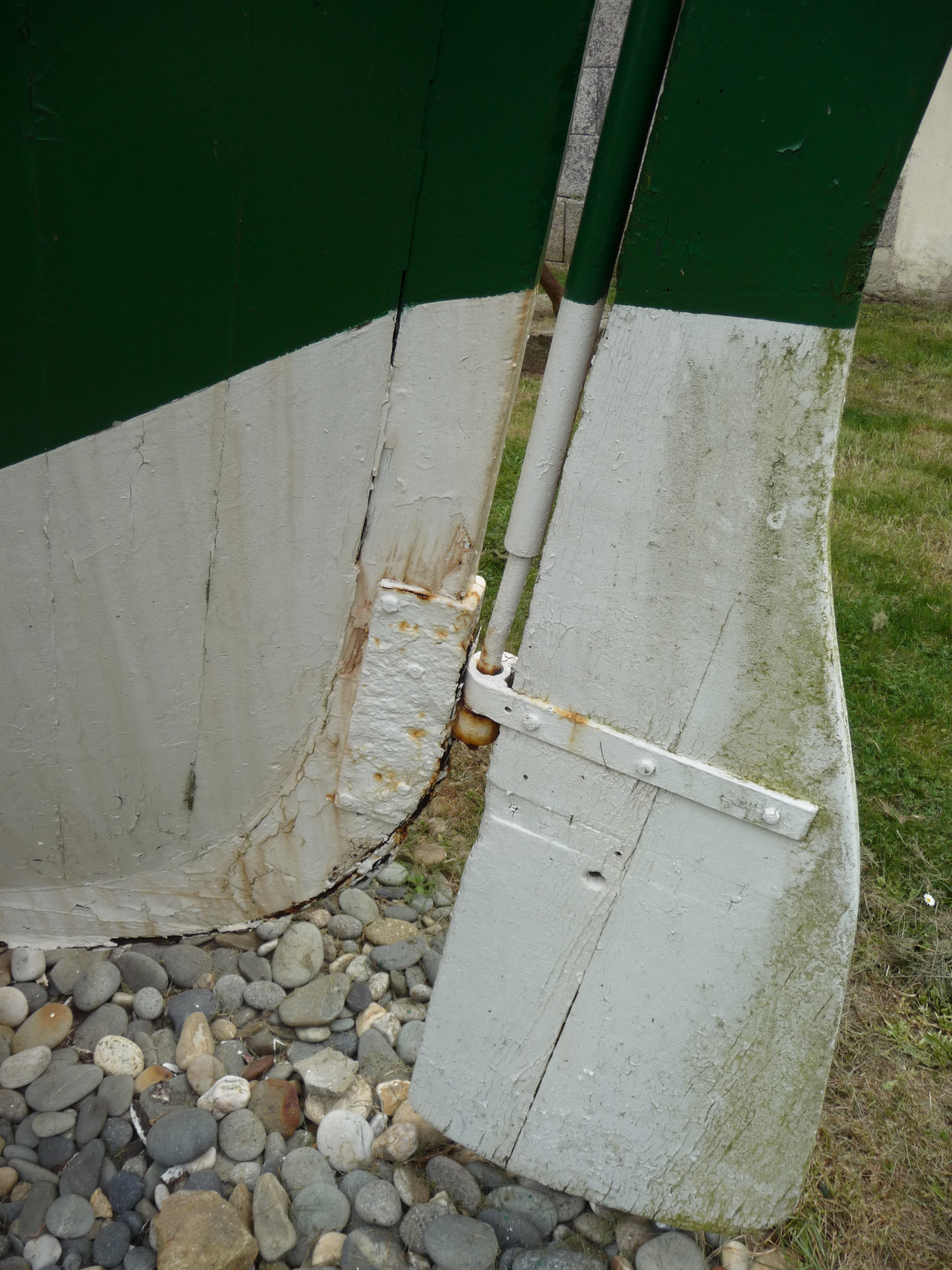 Détail babord fixation gouvernail du Commandant Garreau, cour du Musée de la pêche de Concarneau, avril 2014Immatriculation