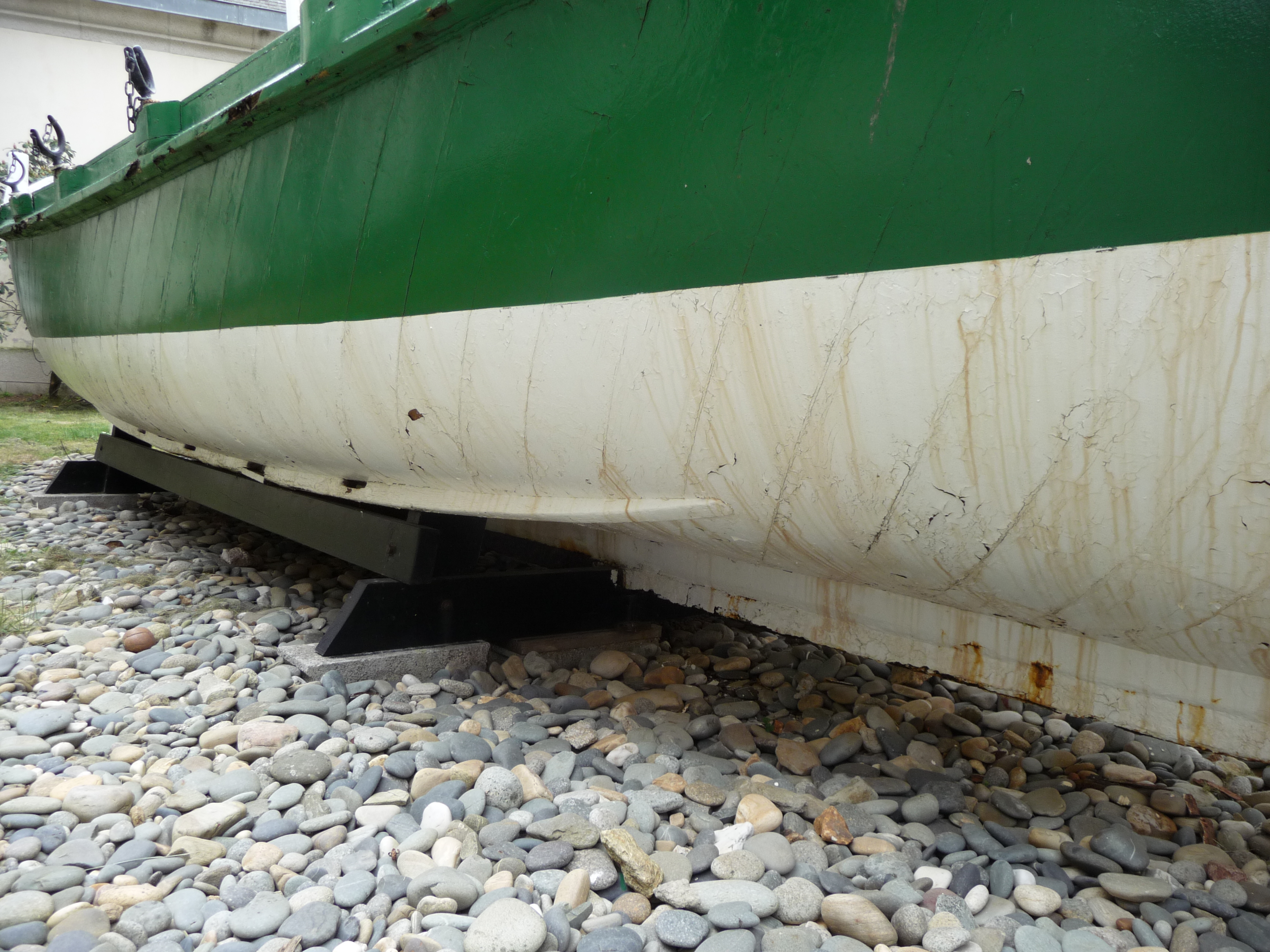 Détail quille et ventrière latérale pour soutien sur le charriot, Commandant Garreau Musée de la pêche de Concarneau, avril 2014Immatriculation