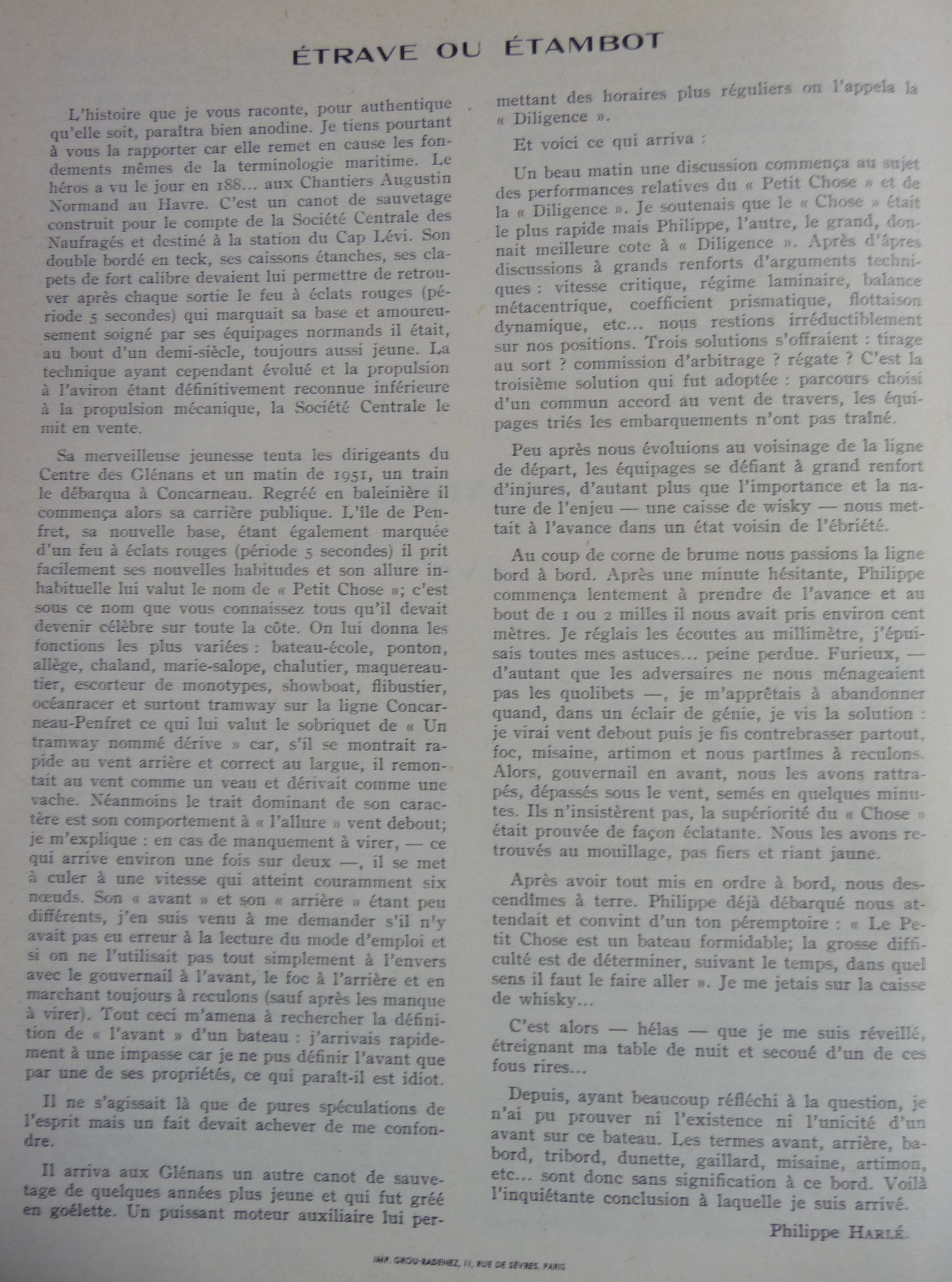 Etrave ou étambot - le Petit Chose, Philippe Harlé, Glénans N° 7 -1956Immatriculation