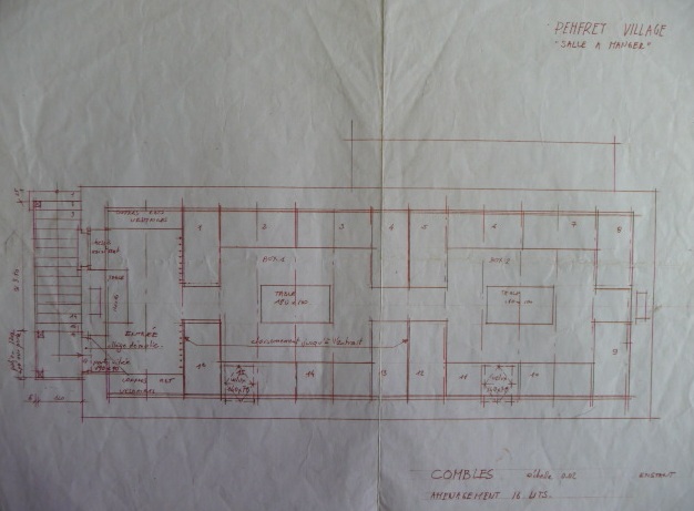 Plan aménagement des combles de Penfret Village, salle à manger -Ferme, auteur inconnu, s.d.Immatriculation
