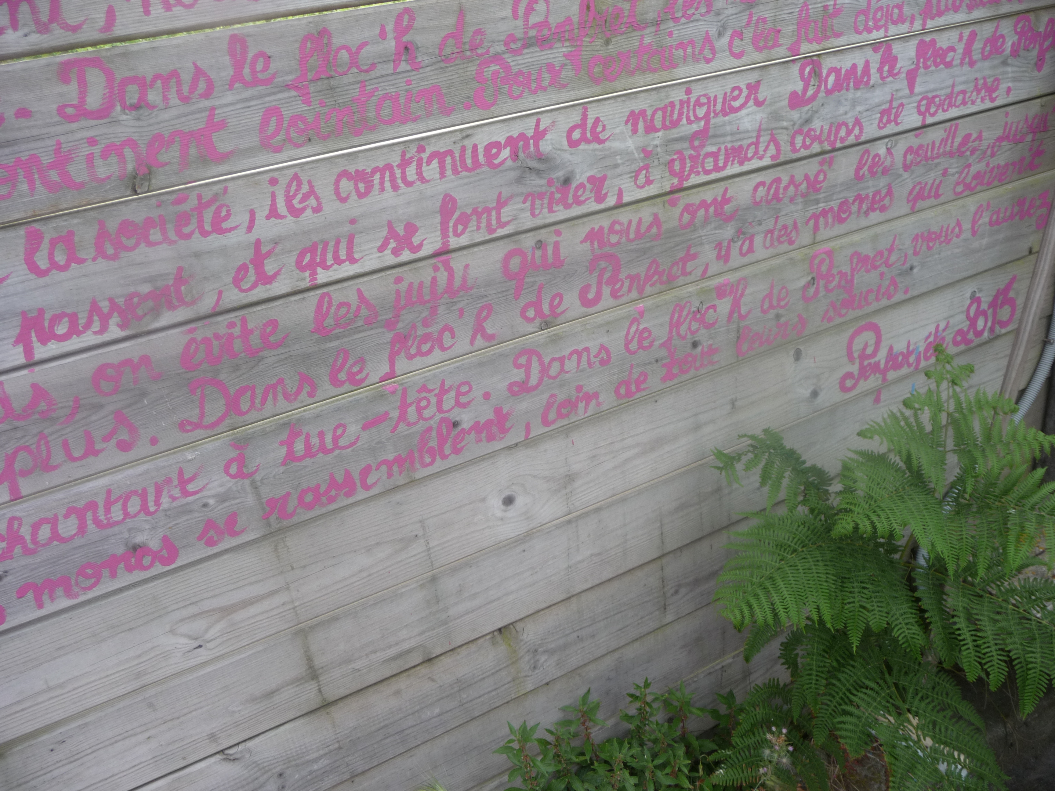 Les fonctions de la cabane Le Floc'h sont peintes sur les planches, Penfret, juin 2014Immatriculation