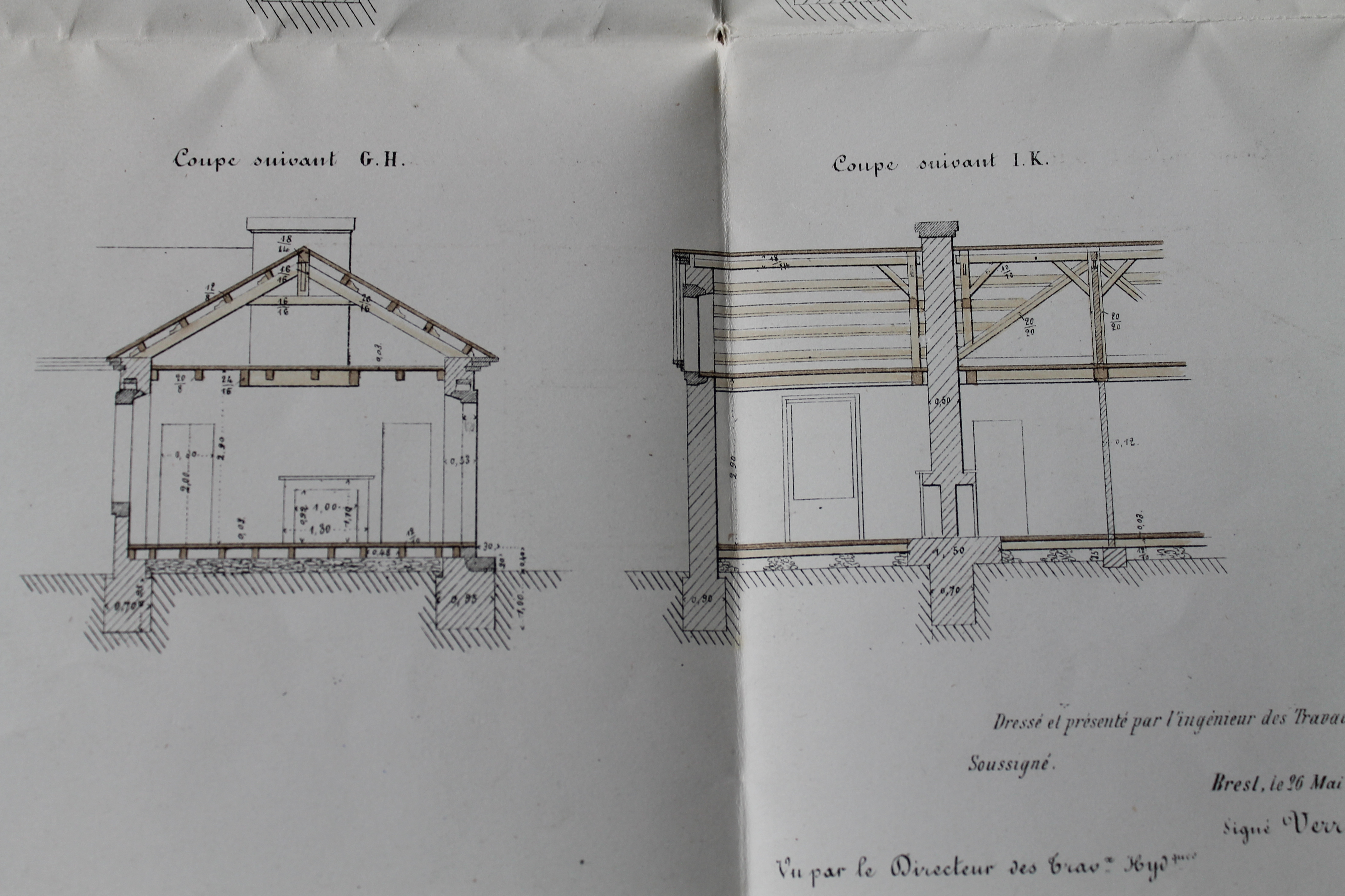 Projets de poste électro-sémaphoriques avec logement pour deux gardiens. Port de Brest, travaux hydrauliques et bâtiments civils. Signé par le directeur des travaux hydrauliques, Dehargne, Brest le 26 mai 1860Immatriculation