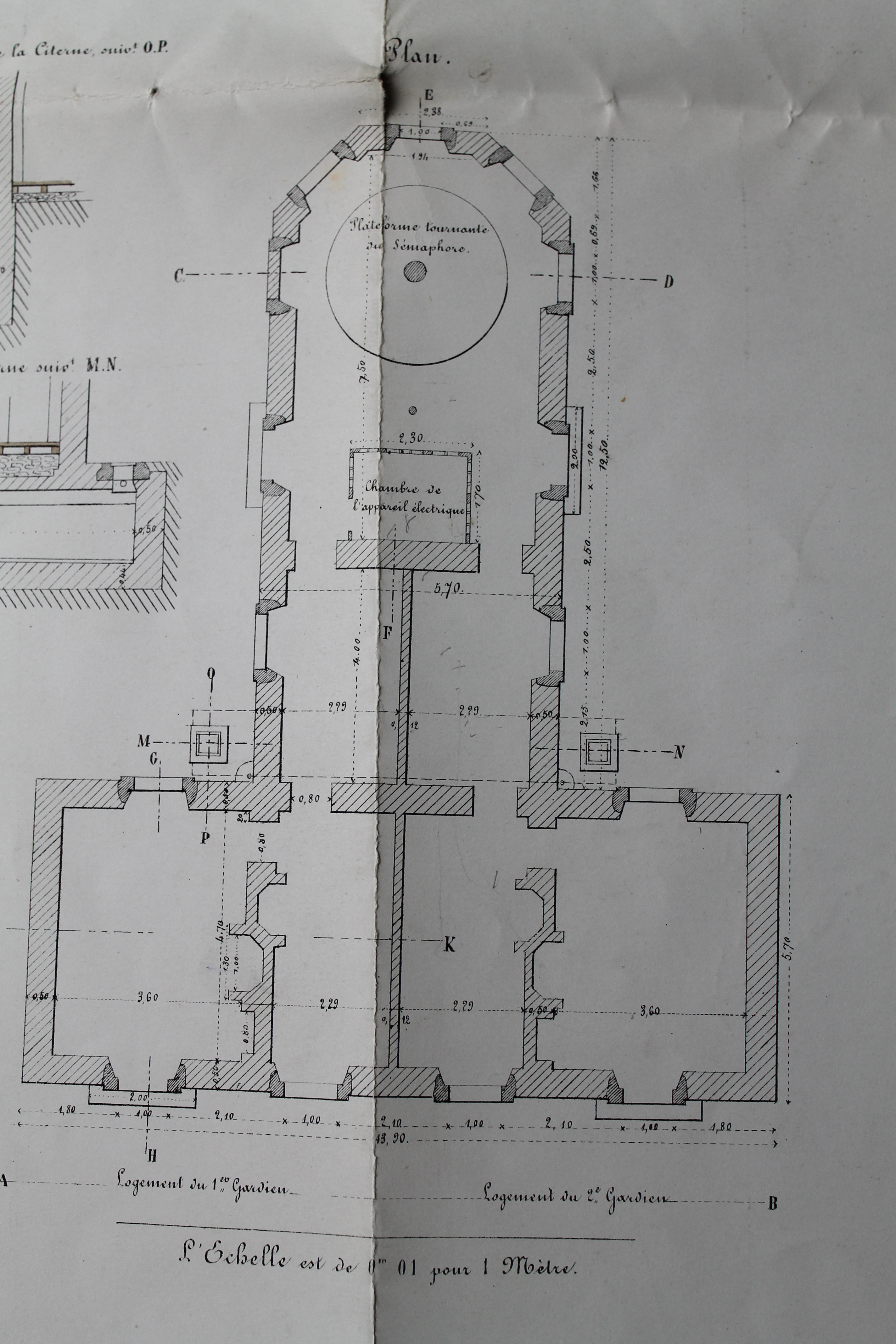 Projets de poste électro-sémaphoriques avec logement pour deux gardiens. Port de Brest, travaux hydrauliques et bâtiments civils. Signé par le directeur des travaux hydrauliques, Dehargne, Brest le 26 mai 1860Immatriculation