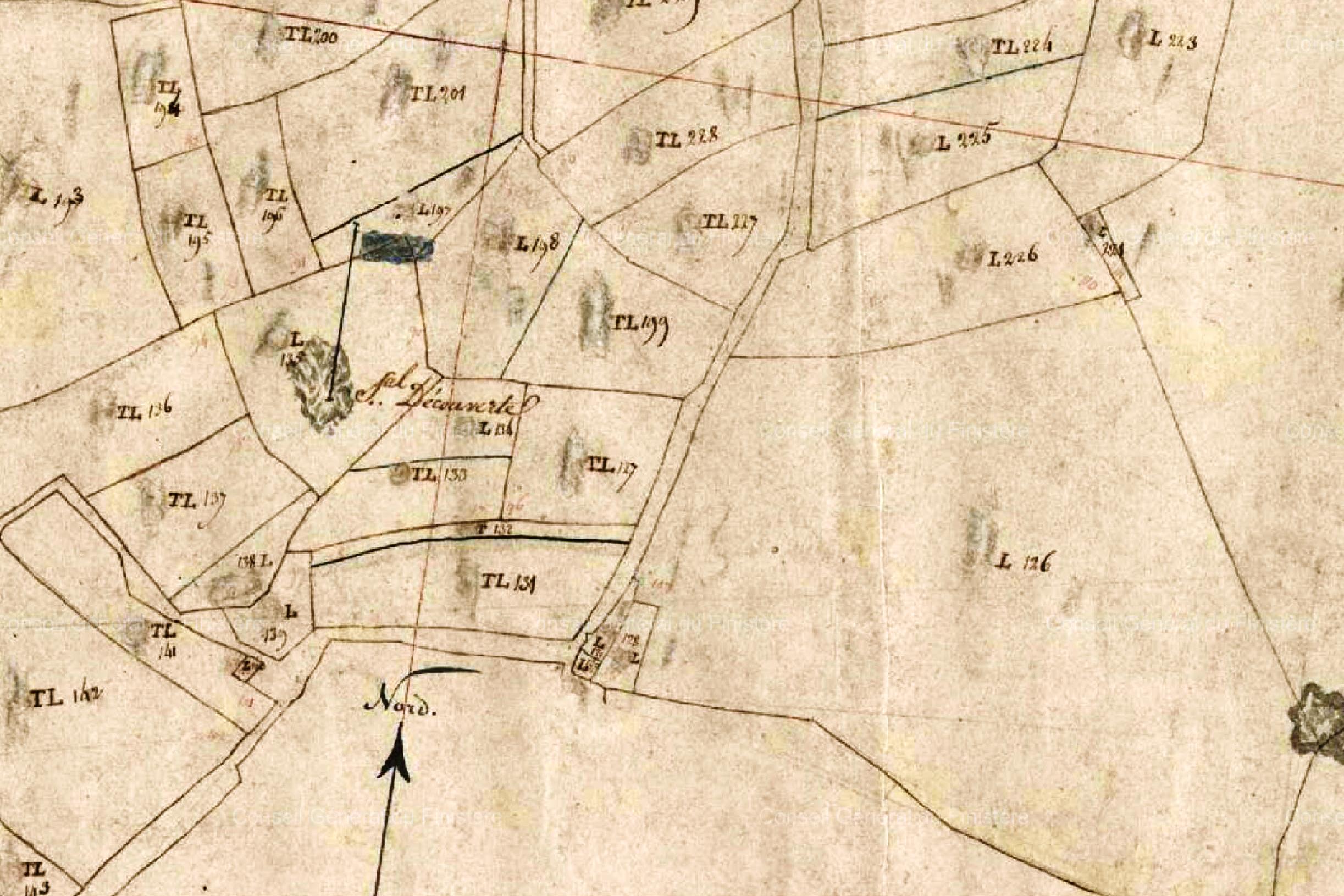 Extrait du plan du cadastre napoléonien de la commune du Tréhou (parcelles n°C133/134/135)Immatriculation