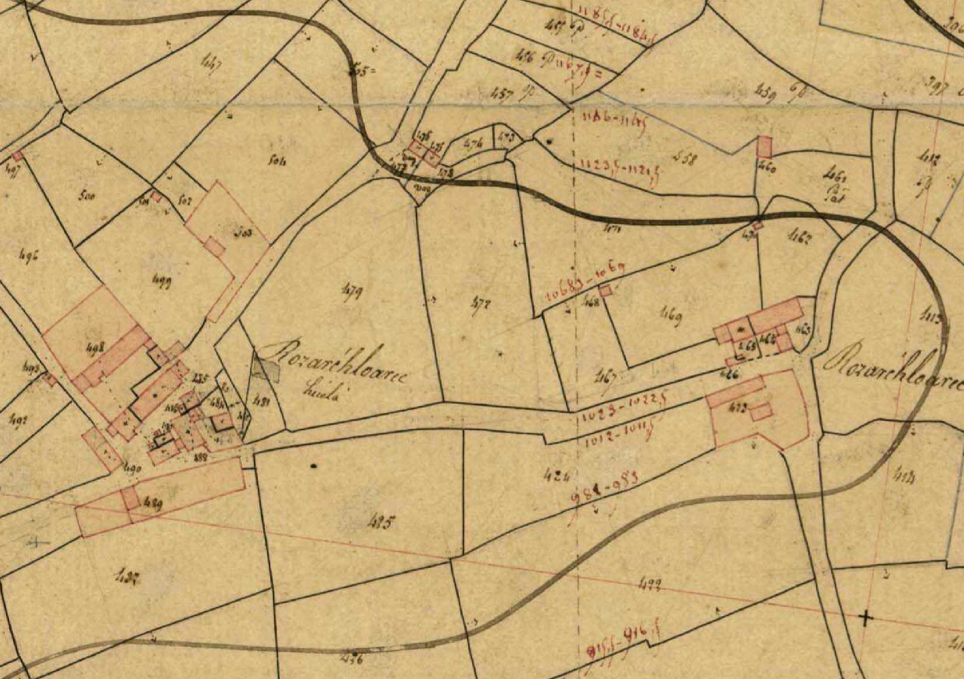 Extrait du plan du cadastre napoléonien de la commune de Guimiliau (parcelle n°B475 et 476)Immatriculation