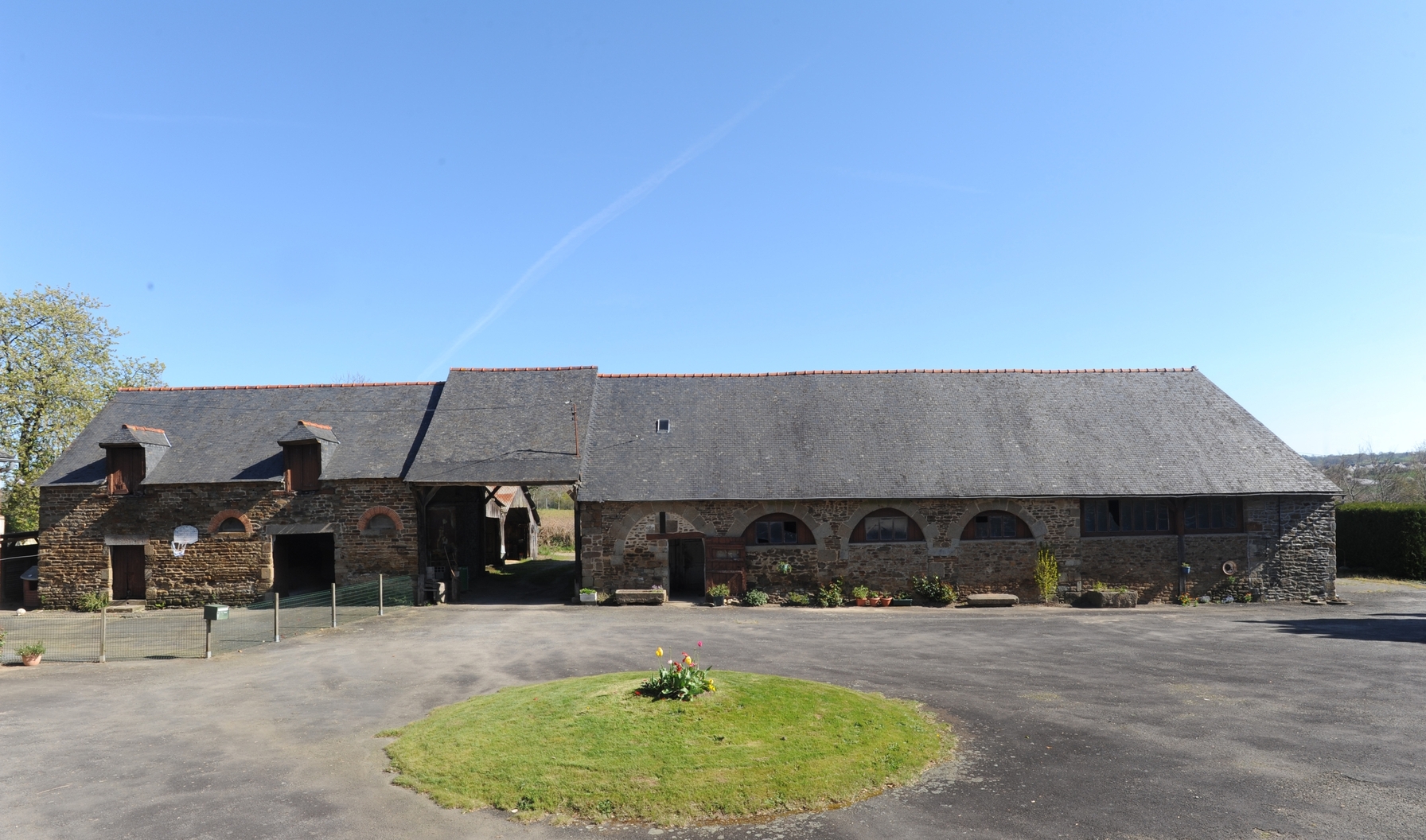 Porche d'entrée de la ferme encadré des écuries et des établesImmatriculation