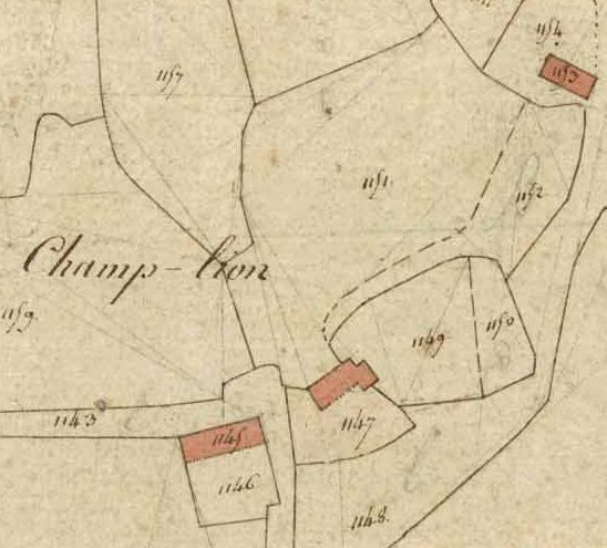 Le Champ Lion sur le cadastre napoléonien du premier quart du 19e siècle.Immatriculation