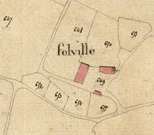 Tableau d'assemblage du plan cadastral parcellaire de la commune de Lécousse, arrondissement de Fougères, département d'Ille-et-Vilaine terminé sur le terrain le 1er janvier 1820 sous l'administration M. le Comte de la Villegontier préfet, Mr Le Vannier Maire et sous la direction de Mr Le Vaillant, directeur des contributions, M. Naylies, ingénieur vérificateur, M.Touchet du Ranquin Jing, géomètre.
