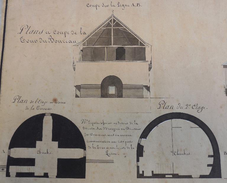 Plans et coupe de la Tour du Bourreau, signé Philippe Brunet-Debaines, 19 février 1811. AD Morbihan 1 Fi 205Immatriculation