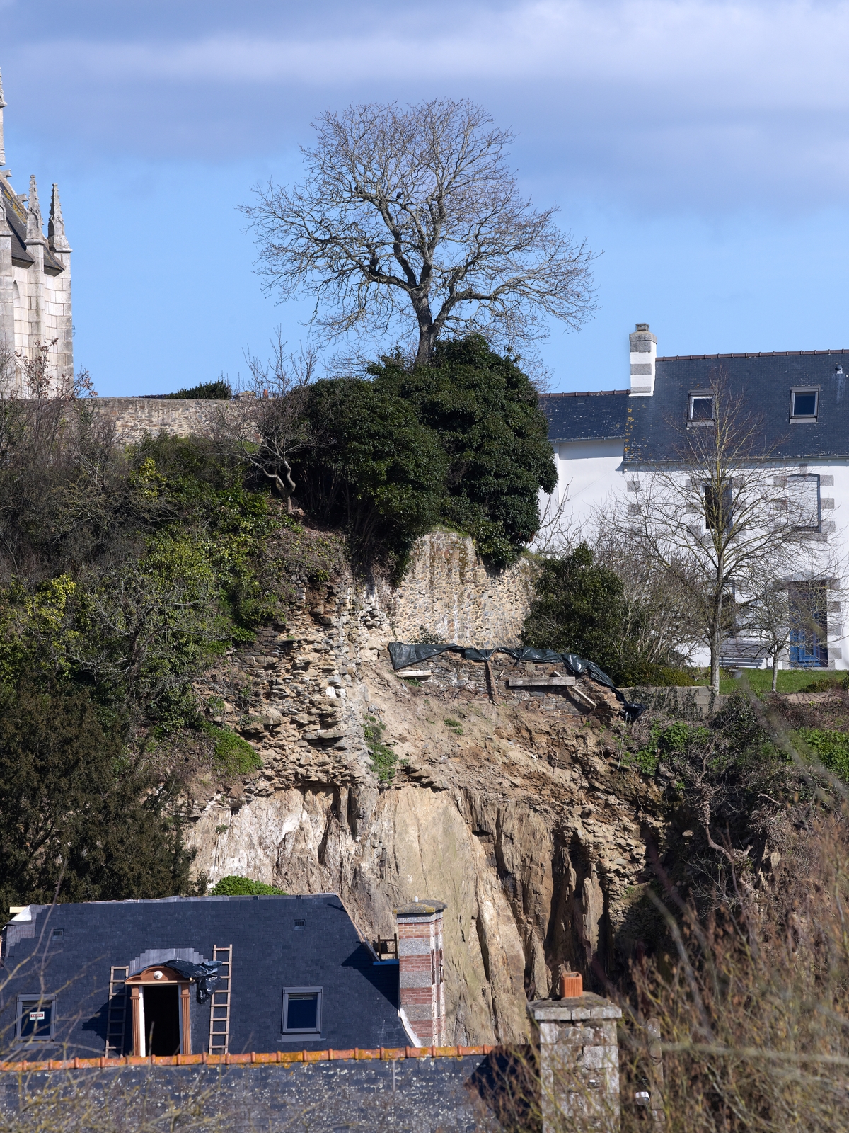 2 rue de la Rive. Eperon rocheux et vestige de mur d'enceinte de l'ancien château. Vue généralesud-ouestImmatriculation