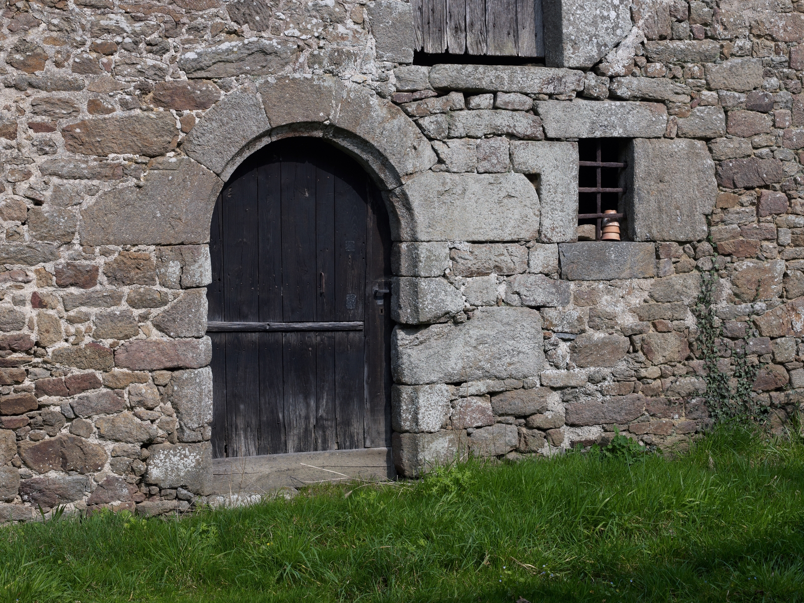 Ferme, route de la Rance, vers 1600 remaniée vers 1800, détail porteImmatriculation