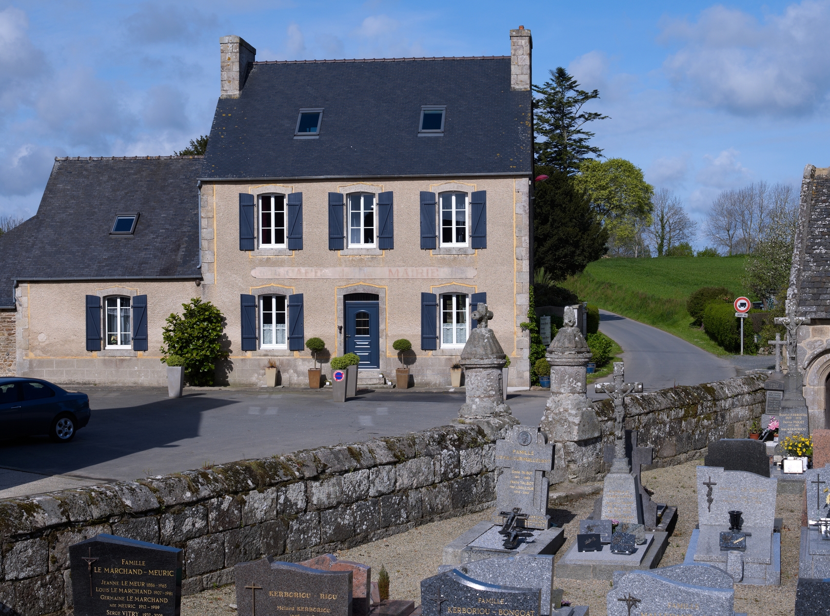 Plouzélambre, le bourg : ancien débit de boissons depuis le cimetièreImmatriculation