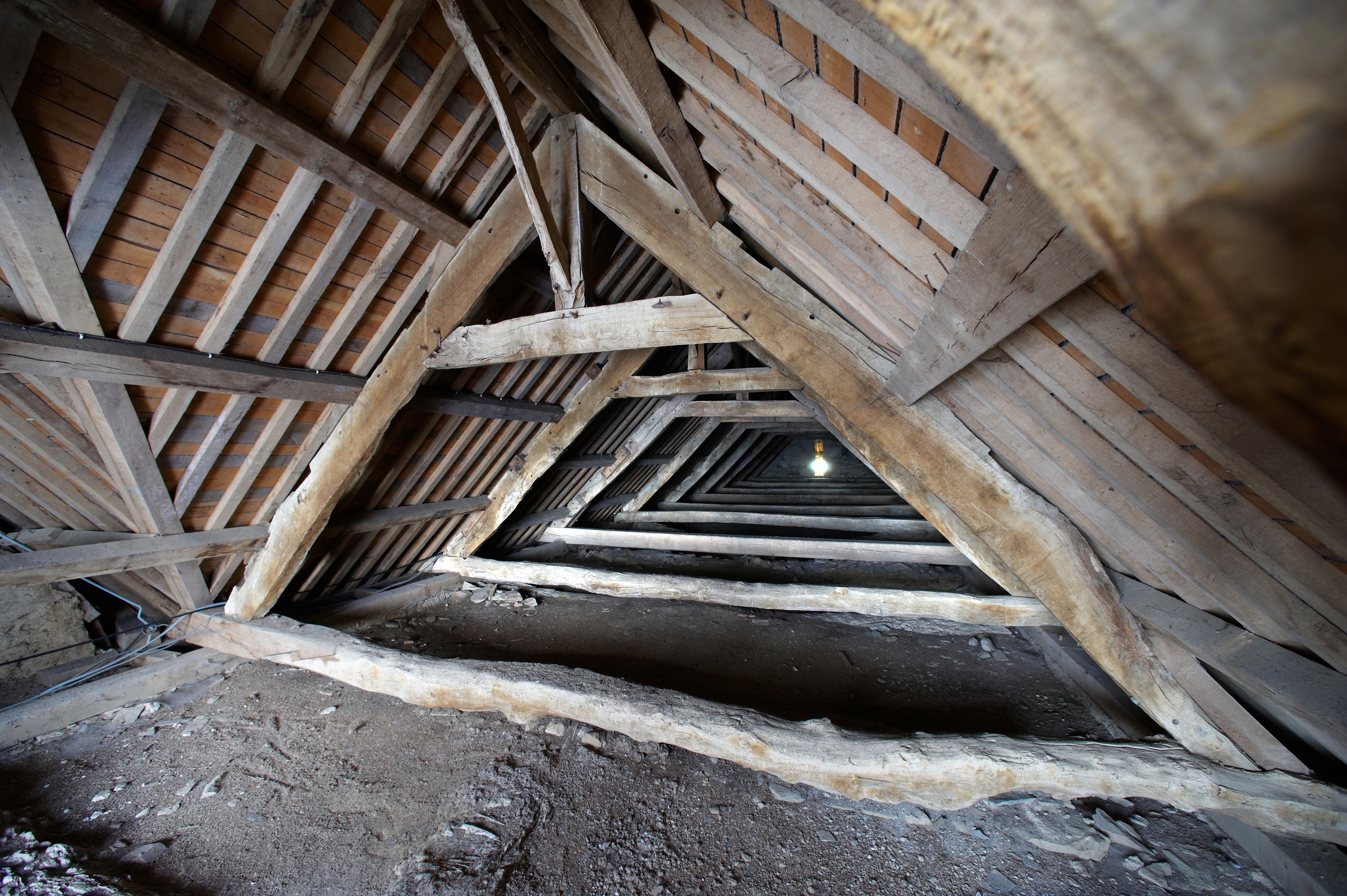 Charpente du vaisseau central, vue générale vers l'ouest.Immatriculation