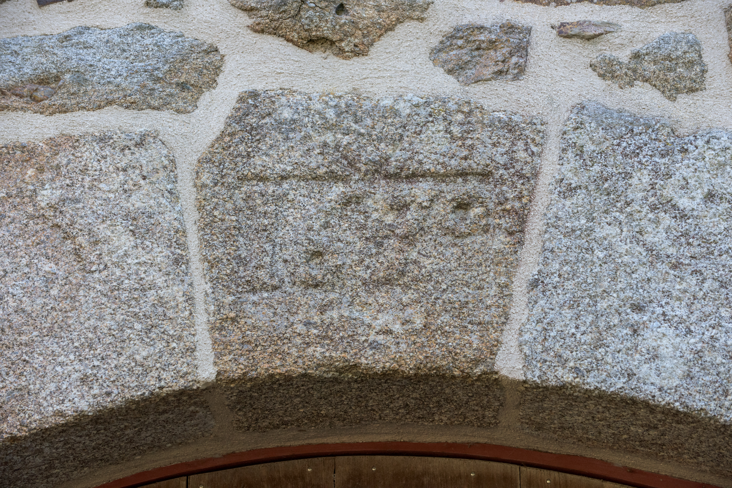 Logis, pavillon, porte, détail : claveau daté 1670Immatriculation