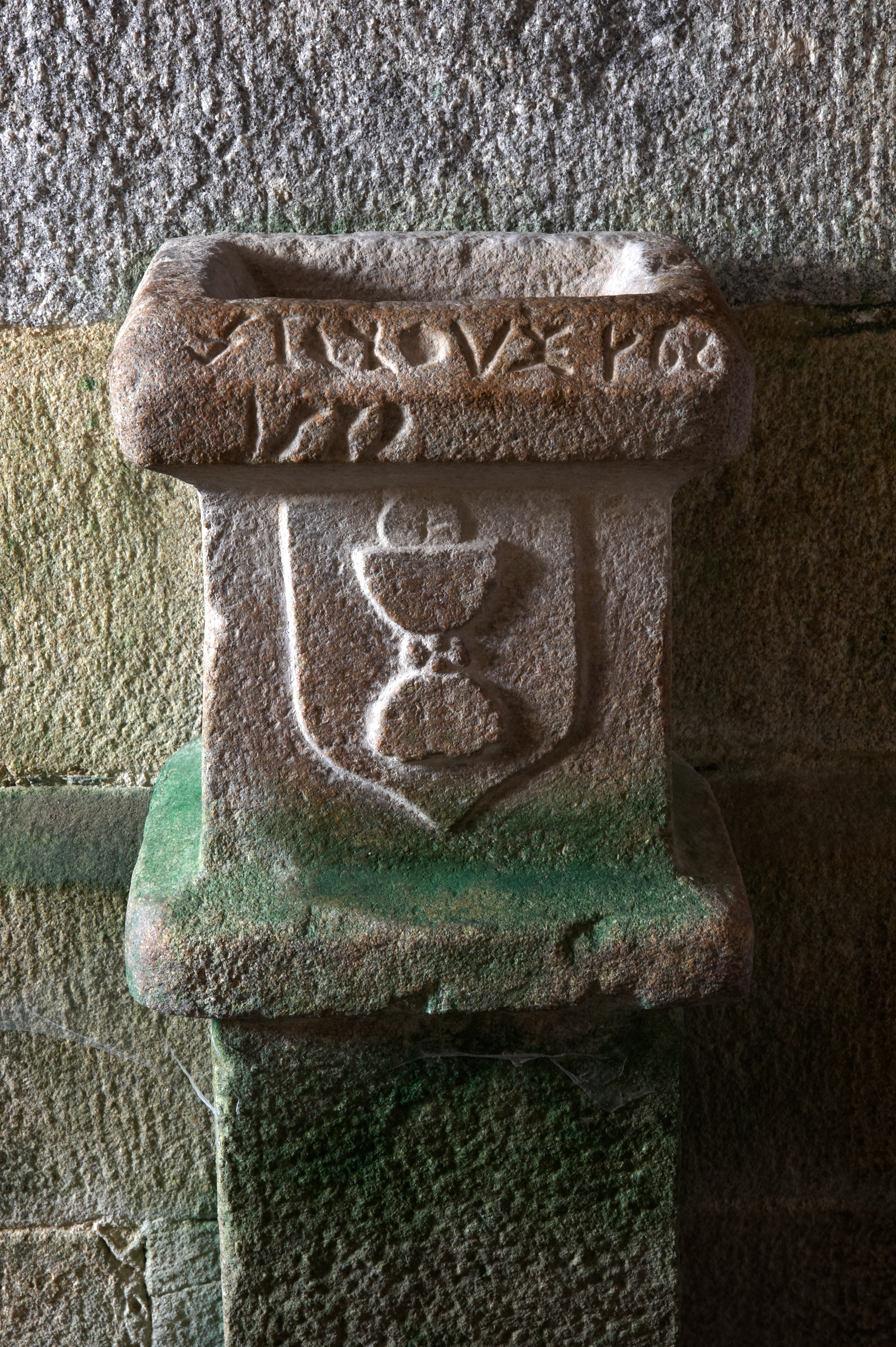 Rospez, le bourg : église paroissiale, détail du bénitierImmatriculation