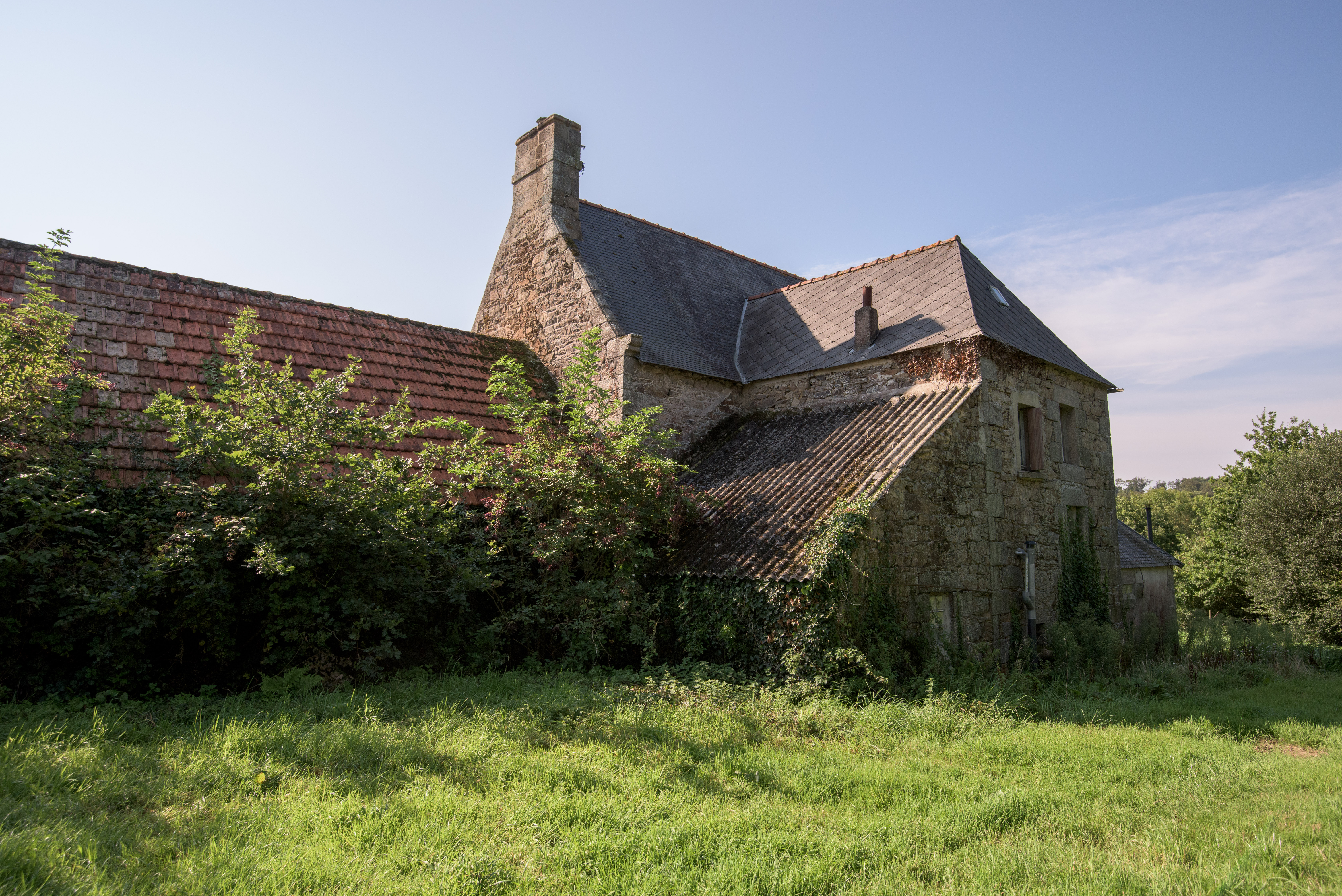 Rospez, Keranfeuillen : logis de ferme, élévation postérieure, vue du logis depuis le nord-est. Les dépendances, couvertes de tuiles, sont situées sur la gaucheImmatriculation