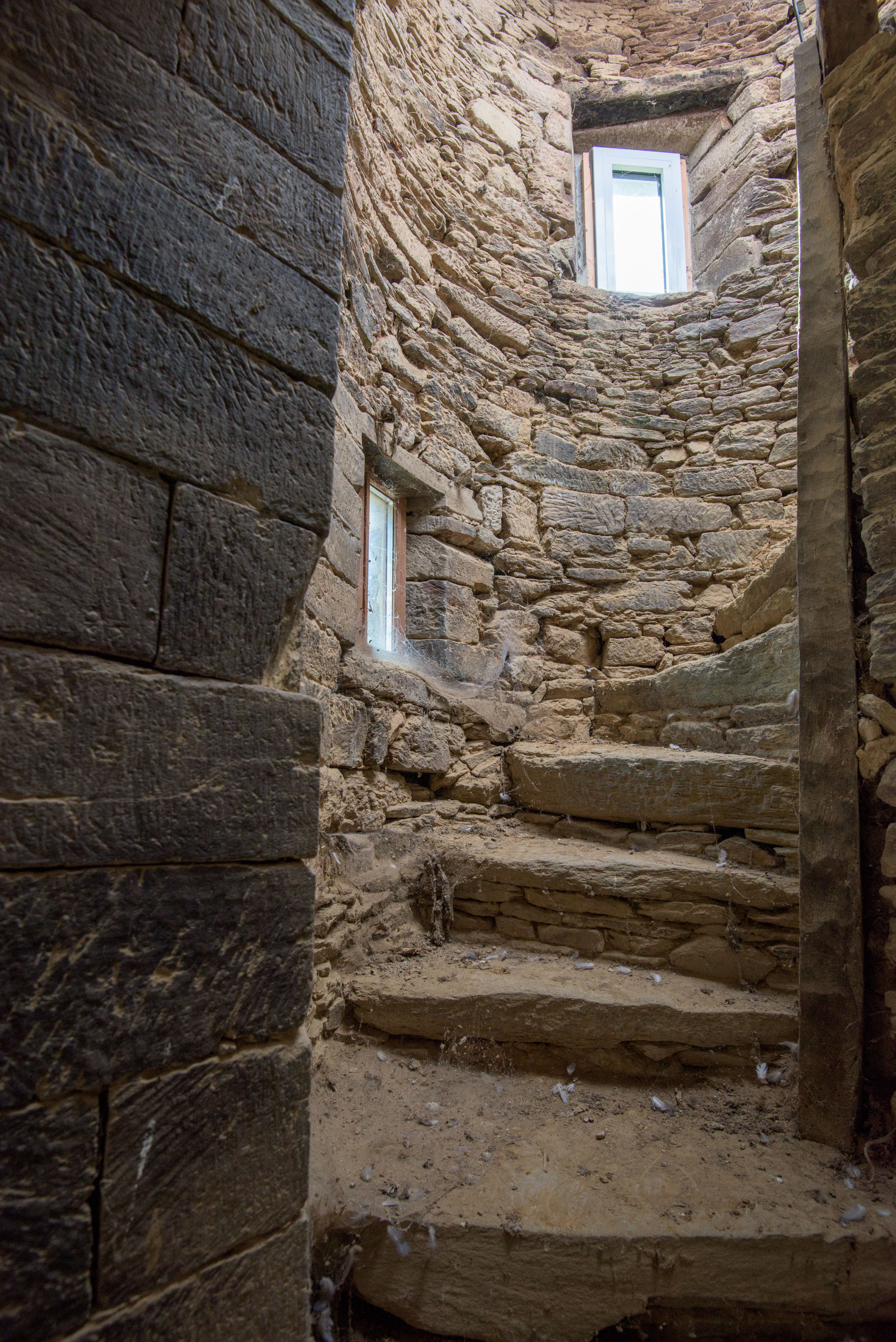 Rospez, manoir de Squivit : élévation sud, logis manorial, tour antérieure en demi-hors-oeuvre accueillant l'escalier en vis secondaire, vue intérieureImmatriculation