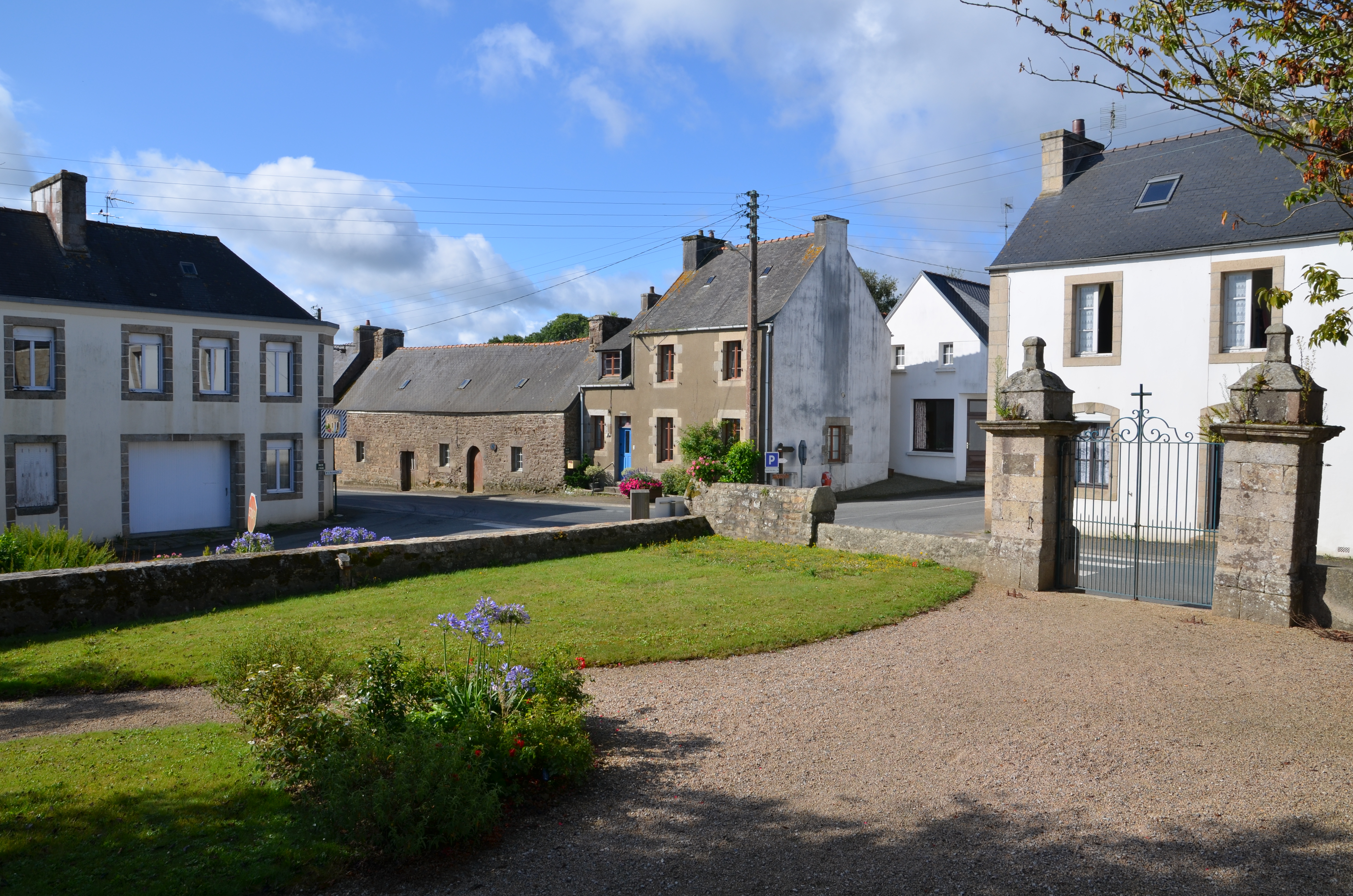 Trémel, le bourg : vue de la rue Beaumanoir depuis l'enclos paroissialImmatriculation