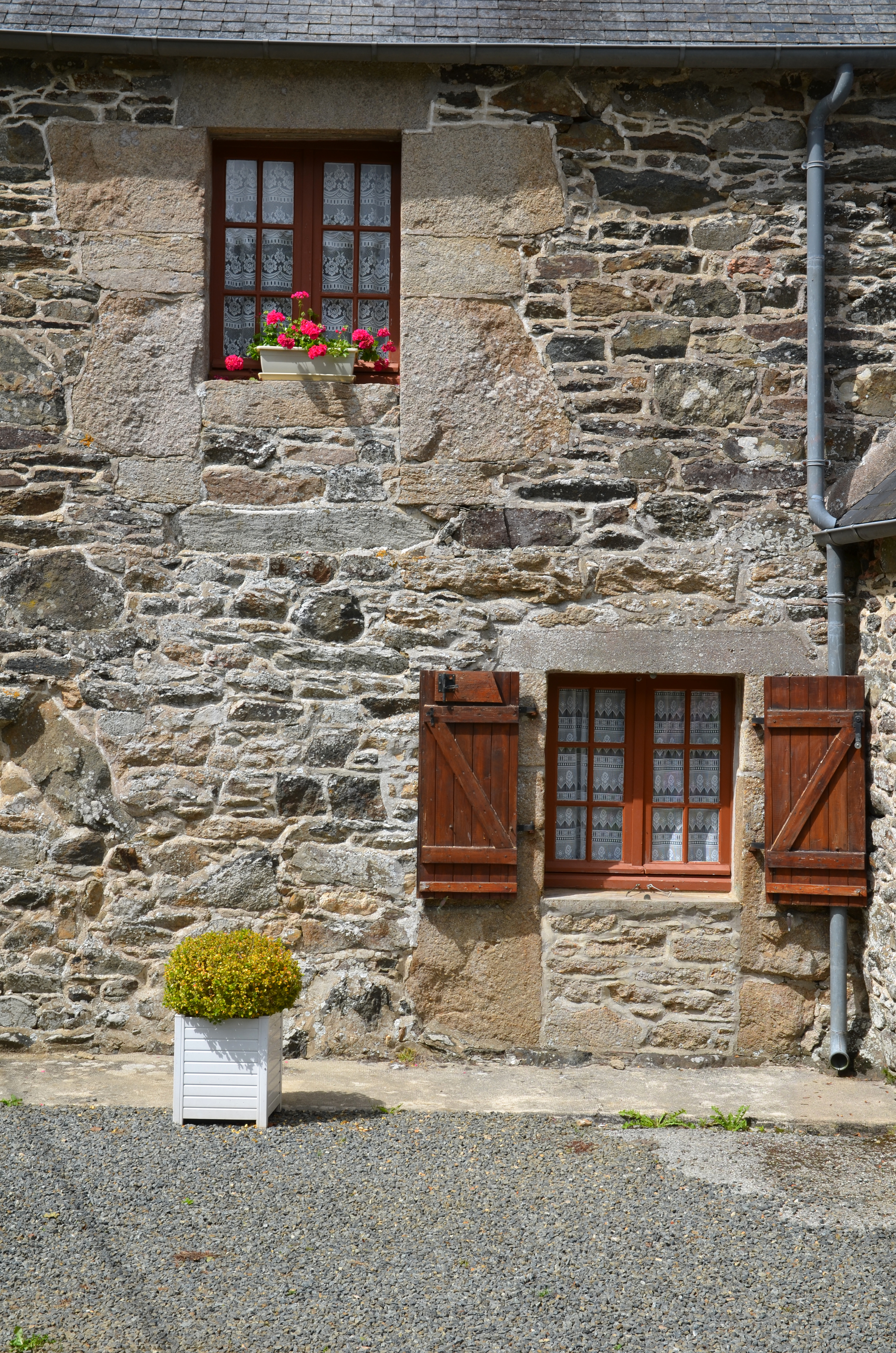 Trémel, Keranlay : ferme, détail de l'élévation antérieure. Le logis était caractérisé par la présence d'une porte basse et d'une porte hauteImmatriculation