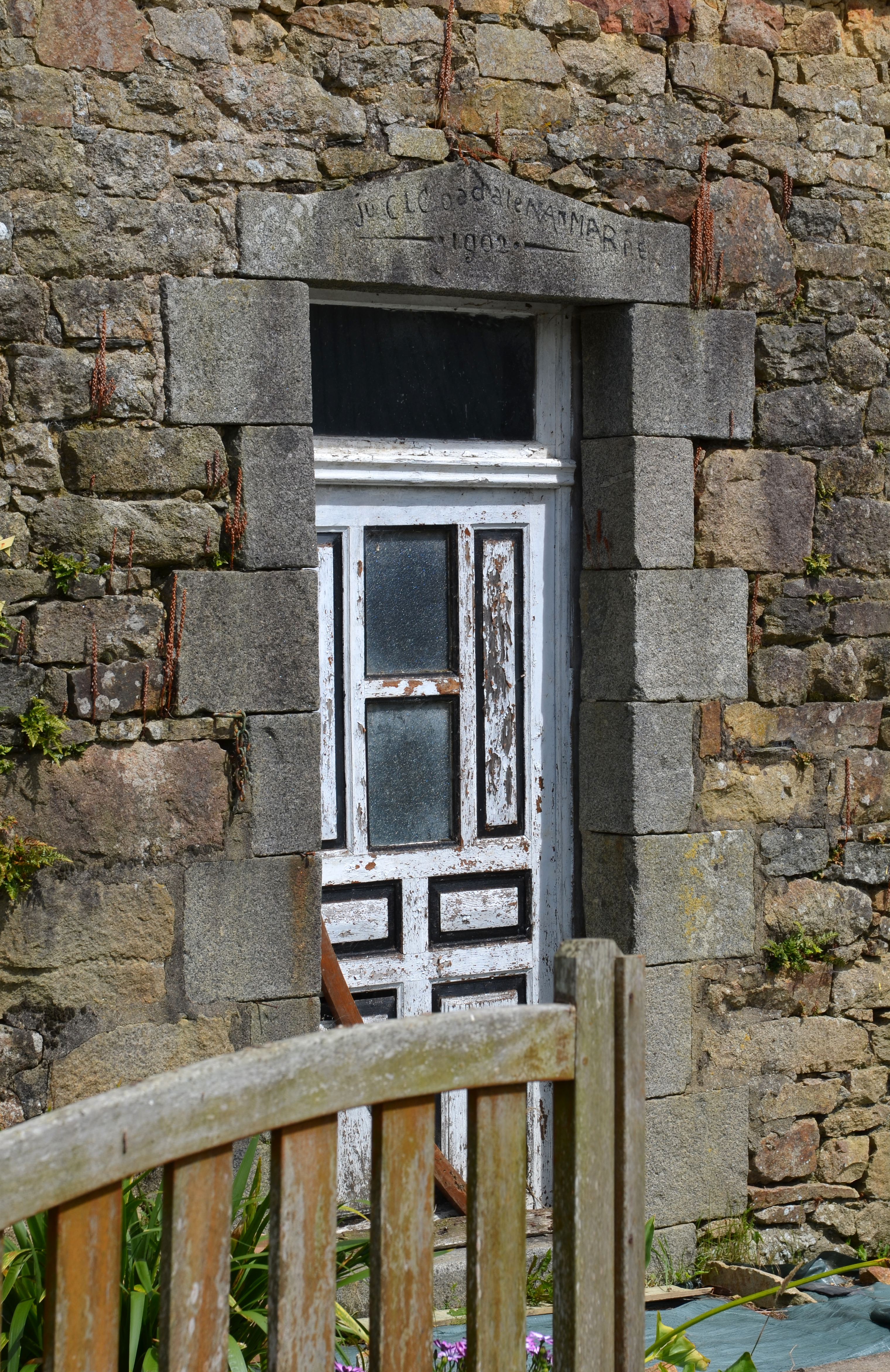 Trémel, Kervidonné : ferme, détail de l'élévation antérieure. Ce logis est daté par millésime de 1902 et porte l'inscription suivante "juCICoadaleNANMARIE"Immatriculation
