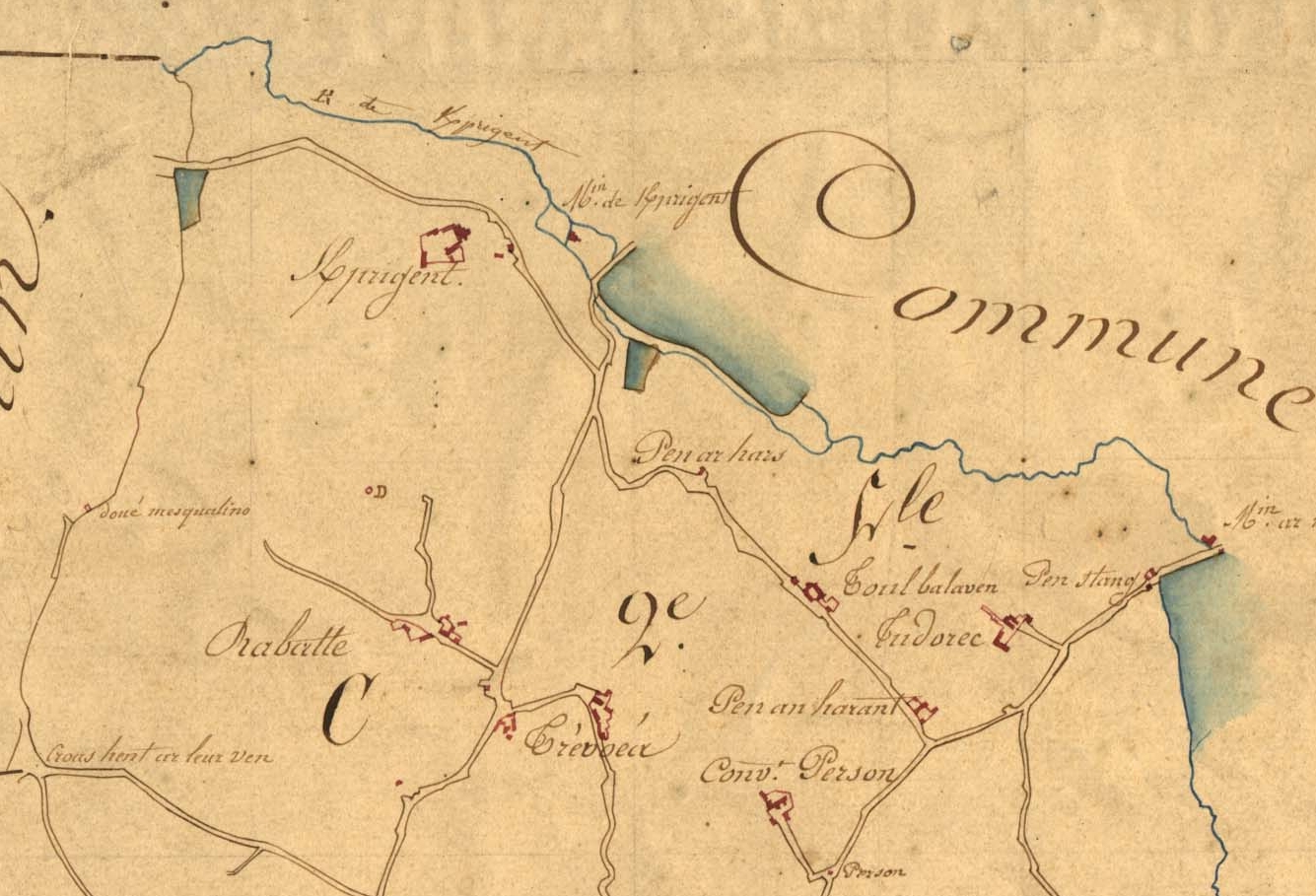Extrait du tableau d'assemblage du cadastre ancien de la commune de Plounérin, 1834 : moulins de Kerprigent et Manac'htyImmatriculation