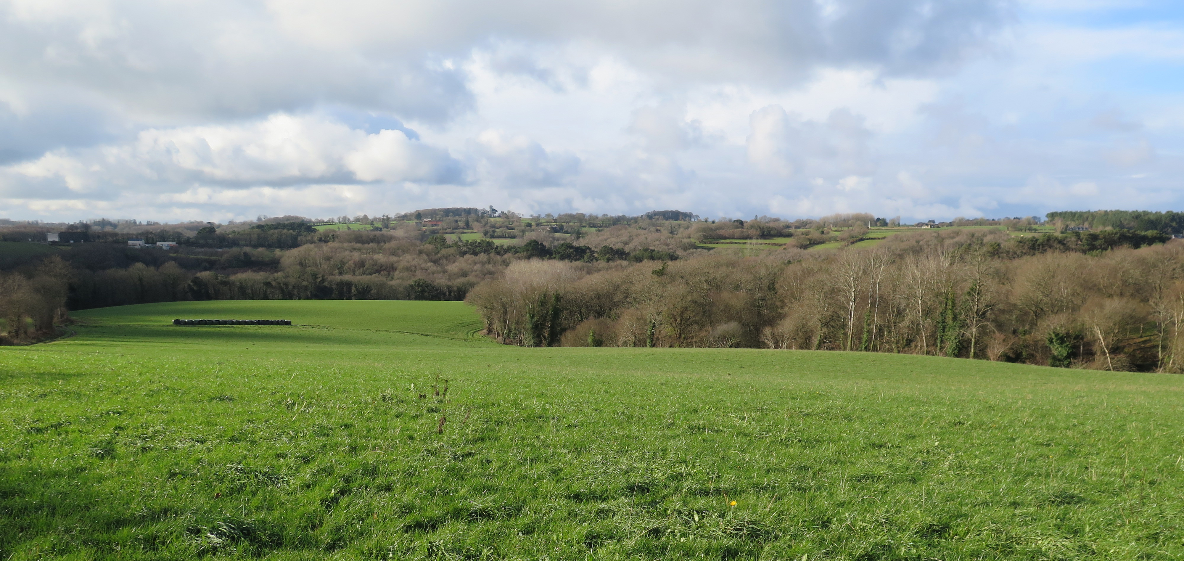 Plufur : vue paysagère des environs de Roz Salaün vers Plestin-Les-Grèves au nord-ouestImmatriculation