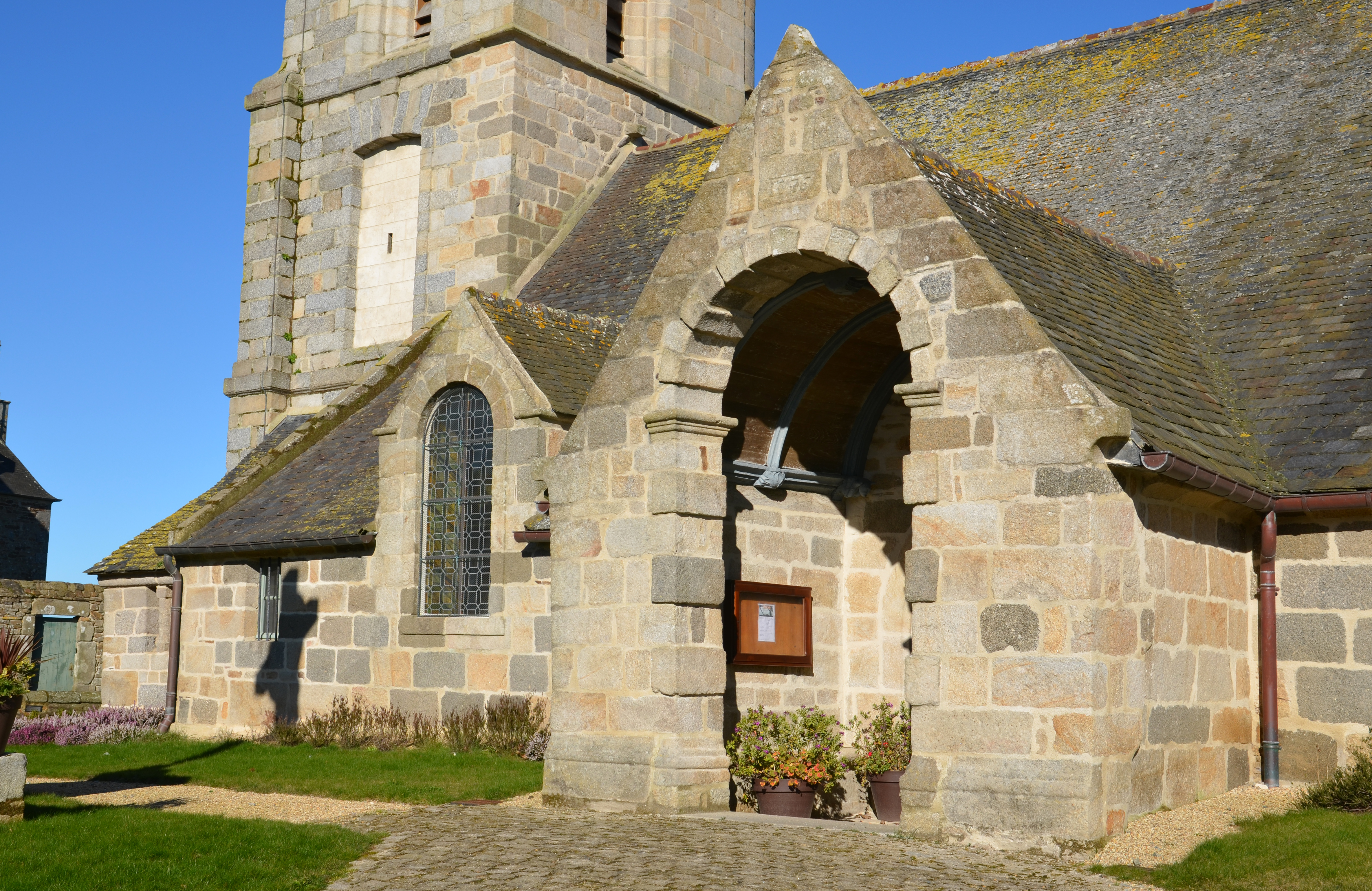 Plufur, le bourg : église paroissiale Saint-Florent, porche sud. Il est daté 1776 par millésimeImmatriculation