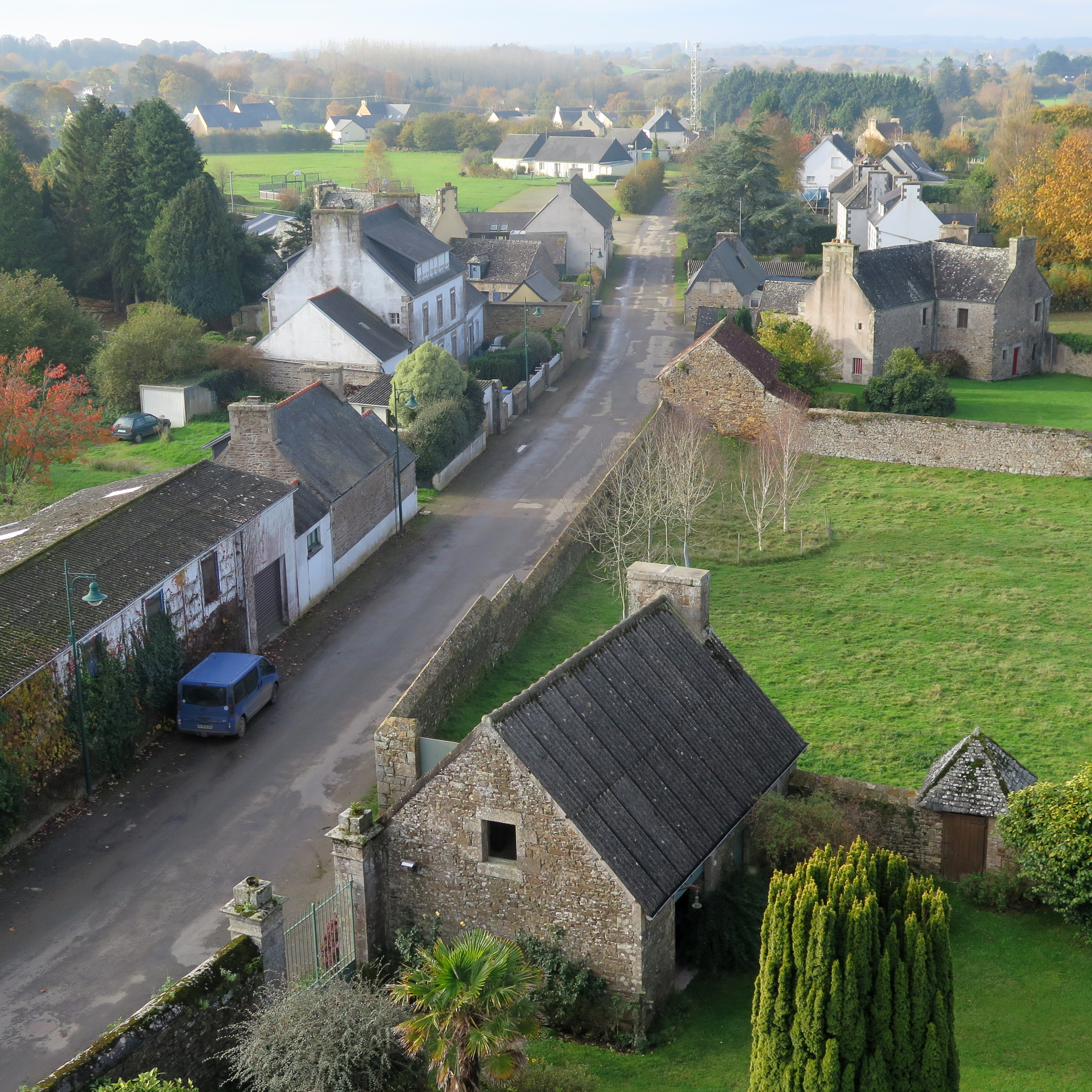 Plufur, le bourg : presbytère, vue générale du jardin depuis le clocher de l'église paroissialeImmatriculation