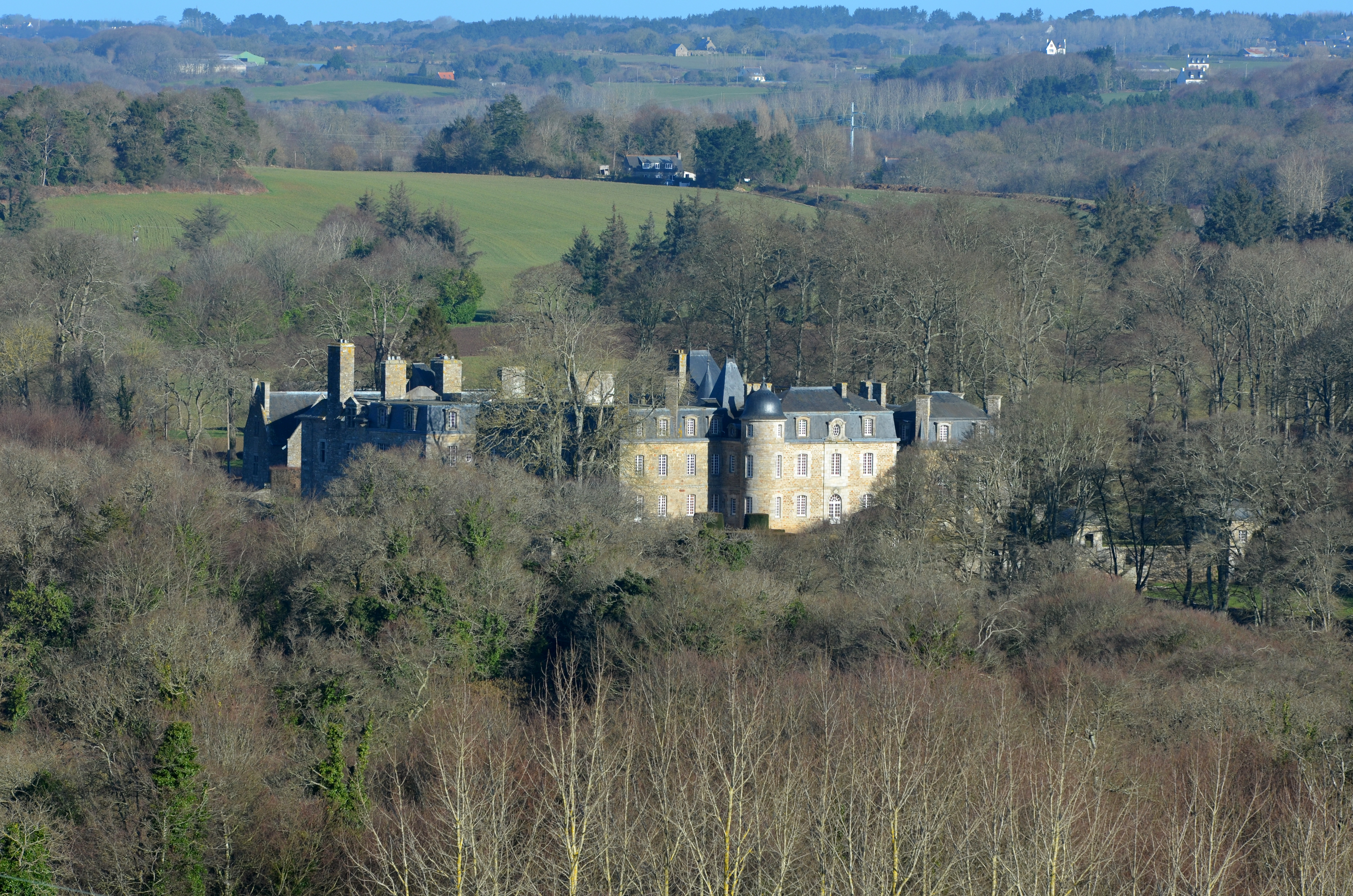 Vue de situation du château de Rosanbo à Lanvellec depuis la ferme - métairie du Run à PlufurImmatriculation
