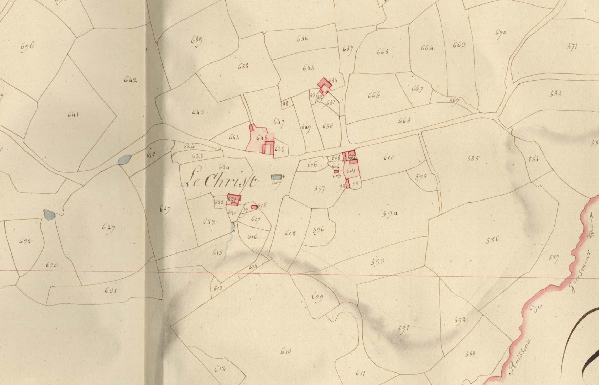 Extrait du cadastre ancien de la commune de Plufur, 1816 : Section D du Manach'Ty, seconde feuille, Le Christ [hameau]Immatriculation