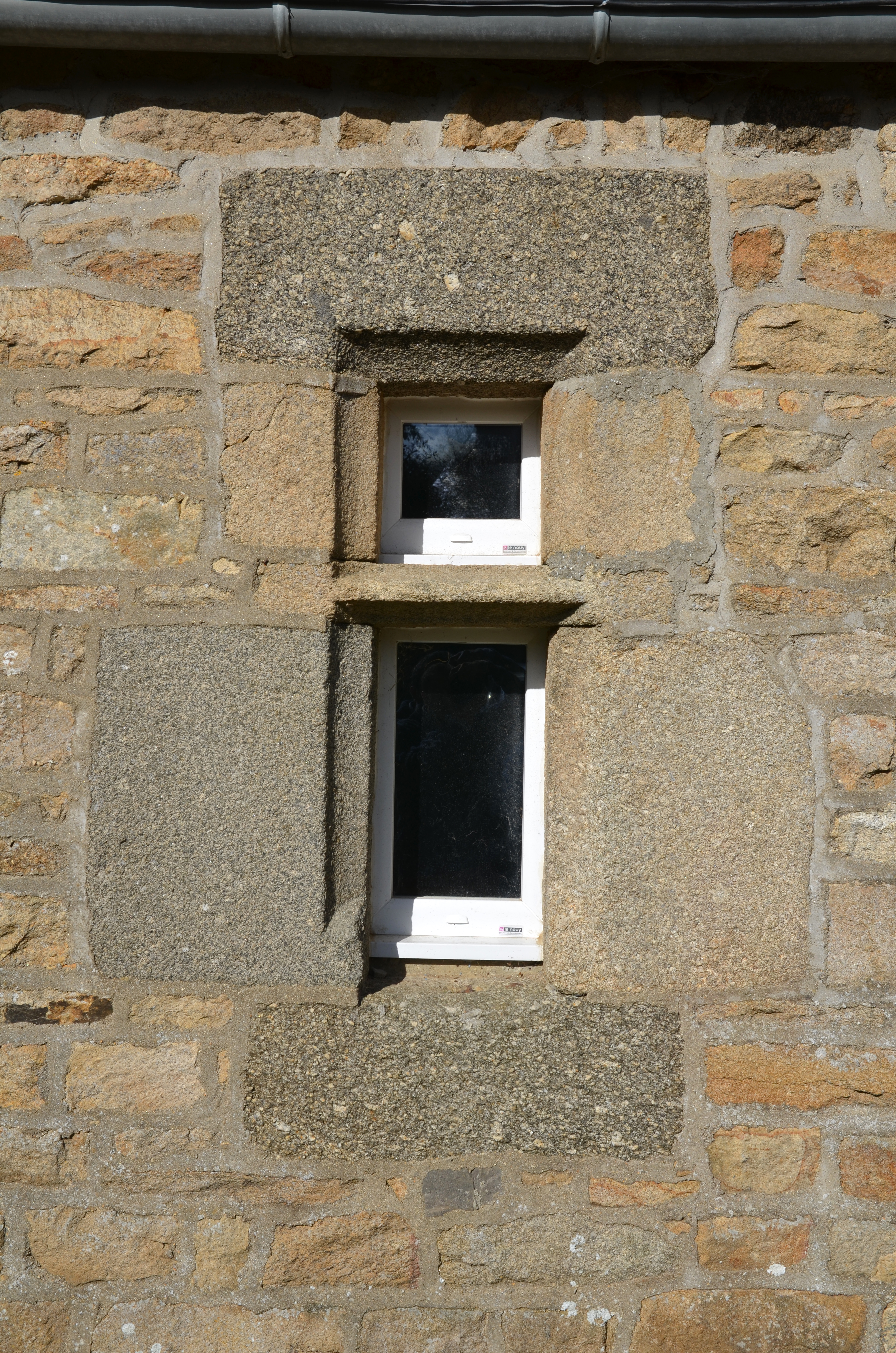Plufur, Kerfubu : ferme, élévation antérieure orientée vers le sud-est, fenêtre à traverse. Cette petite baie est datable des années 1580-1600Immatriculation