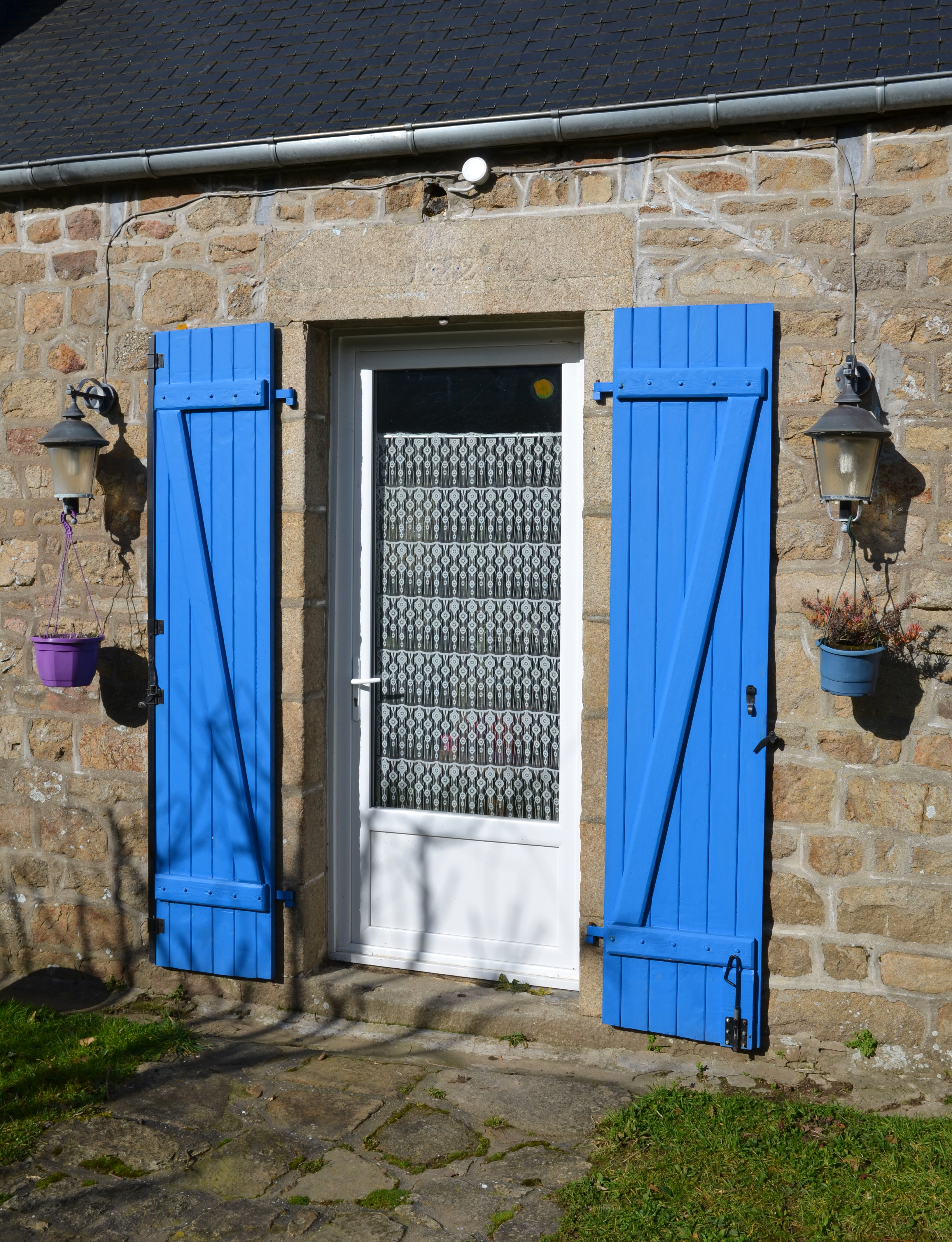 Plufur, Kerfubu : ferme, logis central daté par millésime de 1882, élévation antérieure orientée vers le sud-est, détail de la porteImmatriculation