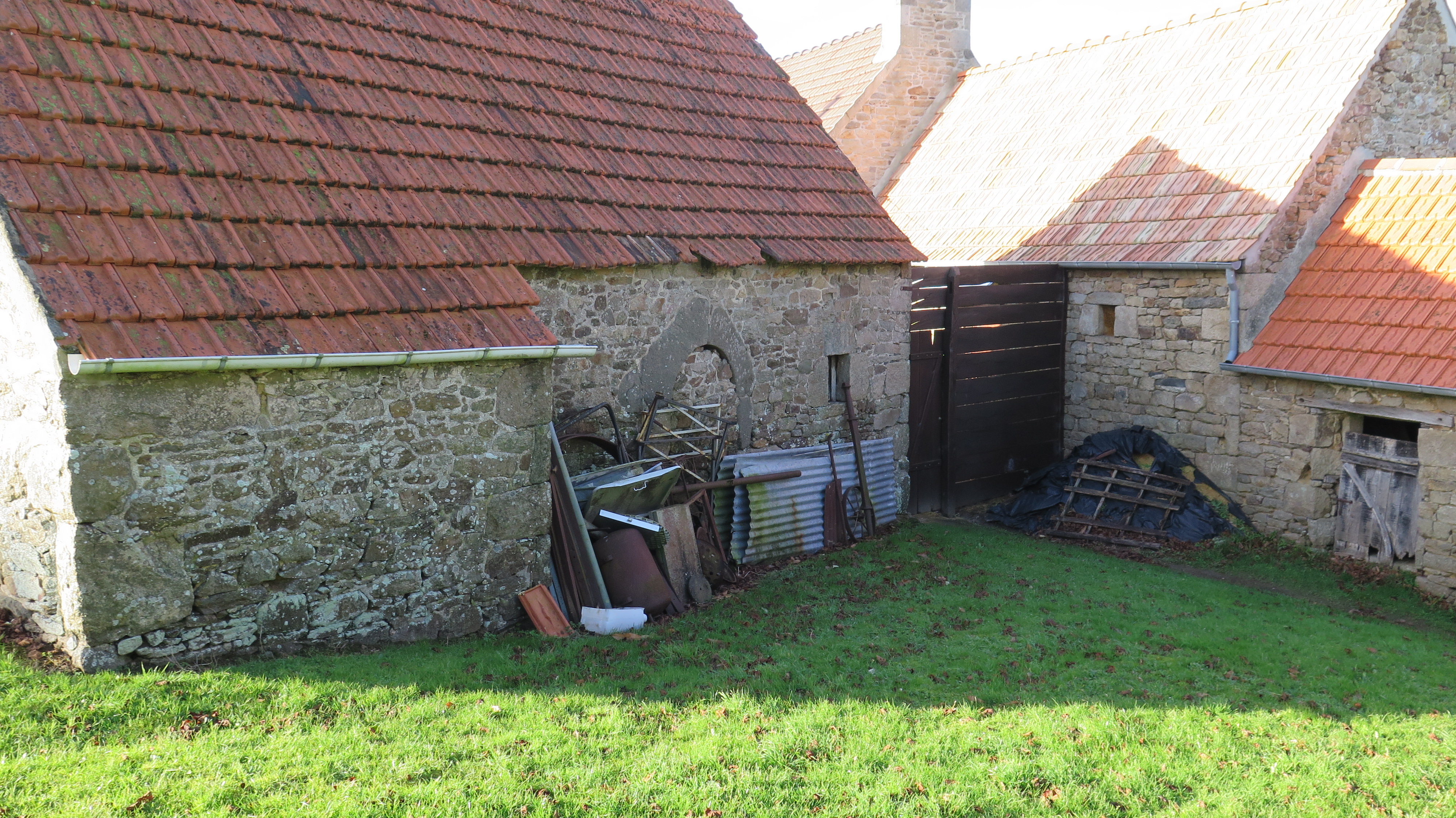 Plufur, Gwazhorgen : ancien logis déclassé en dépendance. Si la couverture en ardoise est réservé au logis neuf, l'ancien logis à Kuz Gwele et les dépendances sont couvertes en tuileImmatriculation
