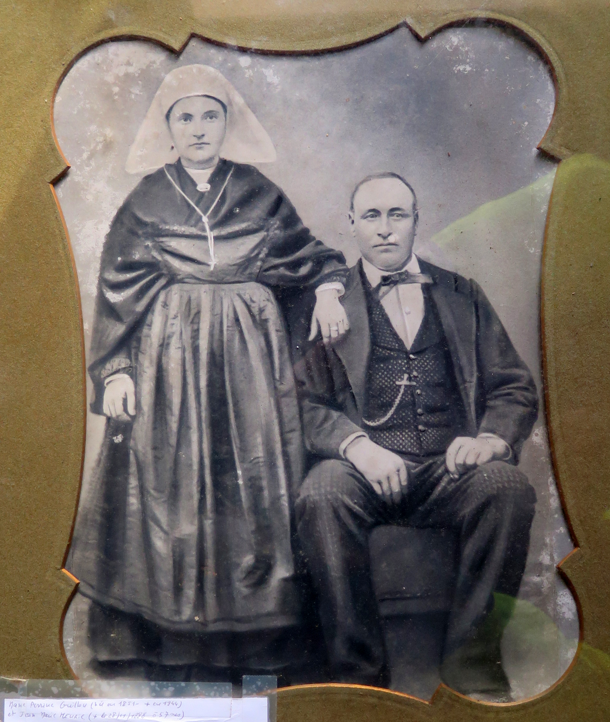 Plufur, Croaz Berr : photographie provenant des archives familiales, portrait de Marie Perrine GUILLOU (1851-1944) et de Jean-Marie MEURIC (mort en 1888) (collection particulière)Immatriculation