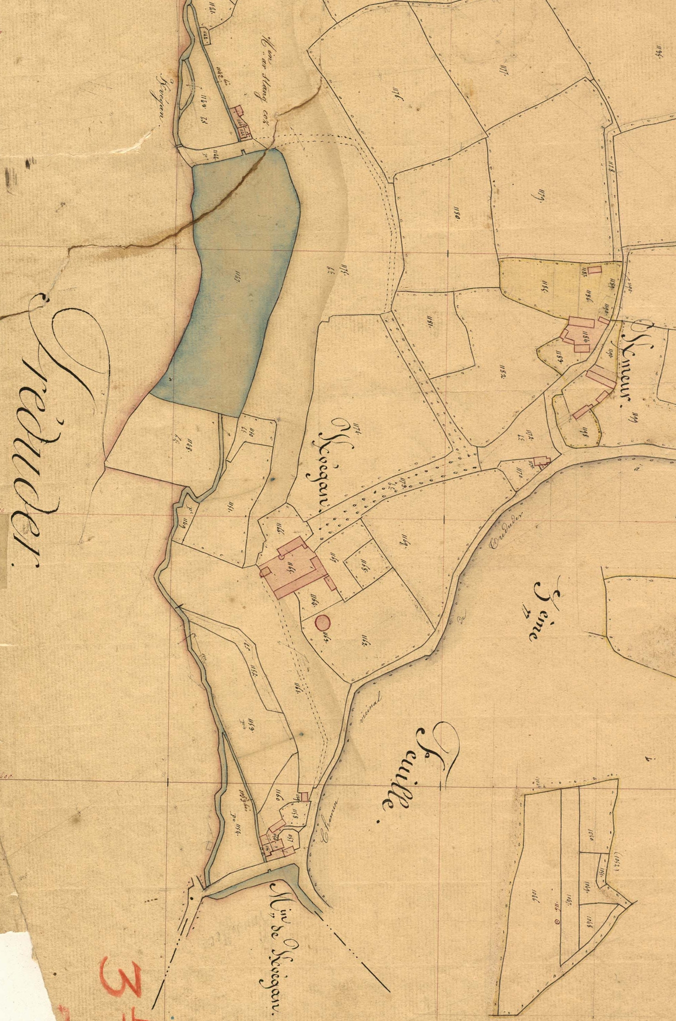 Extrait du cadastre ancien de la commune de Plouzélambre, 1848 : KervéganImmatriculation