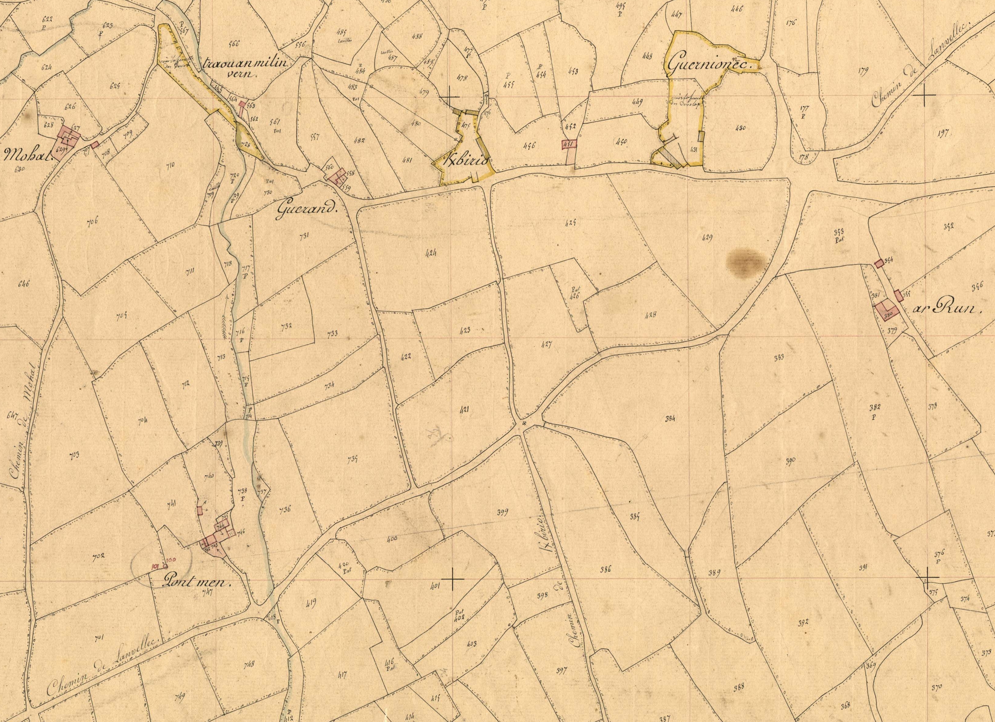Extrait du cadastre ancien de la commune de Plufur, 1848 : croix du chemin de KerbirioImmatriculation