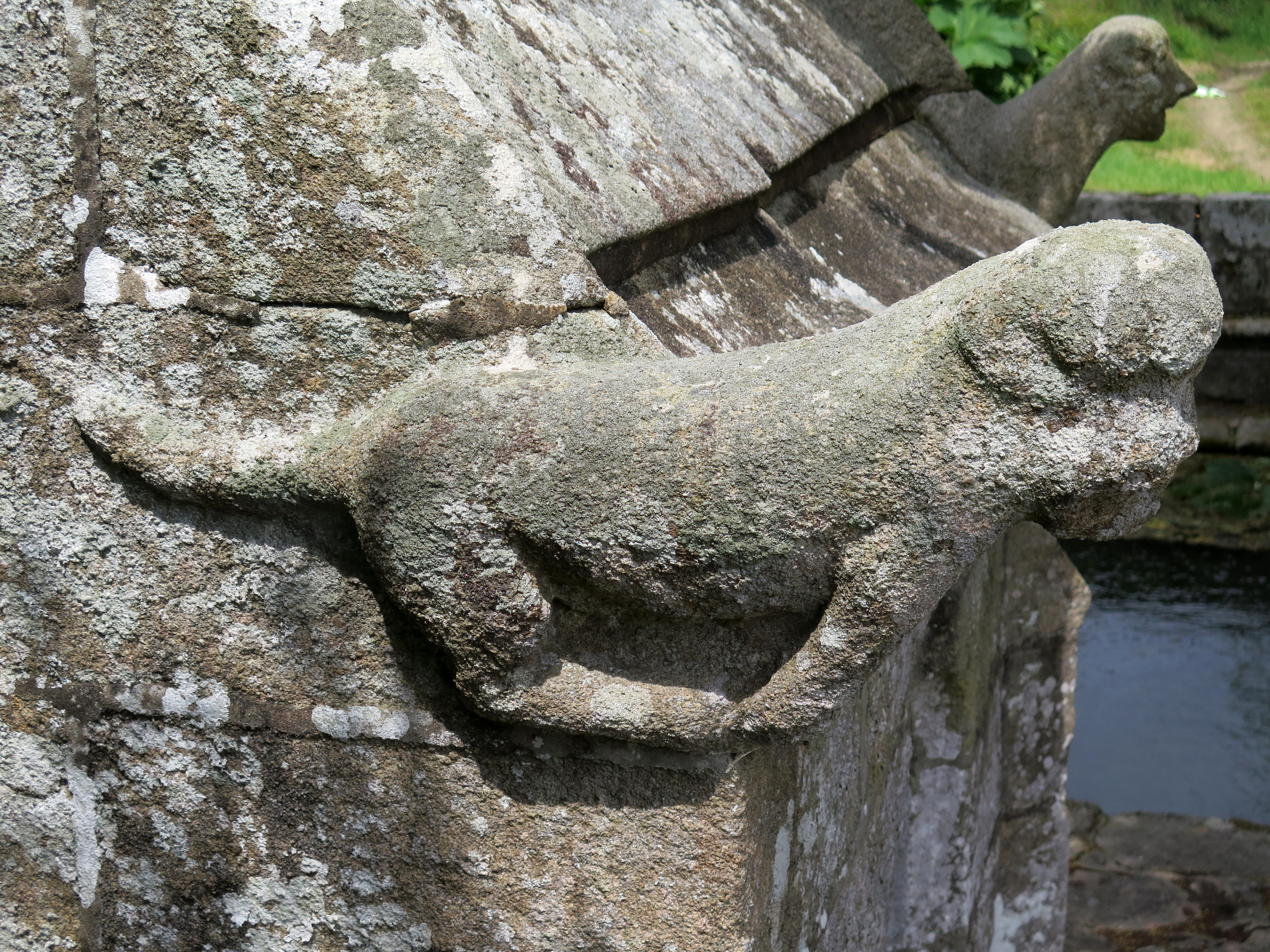 Plouzélambre : fontaine de dévotion dédiée à saint Sylvestre, chevronnière sculptéeImmatriculation