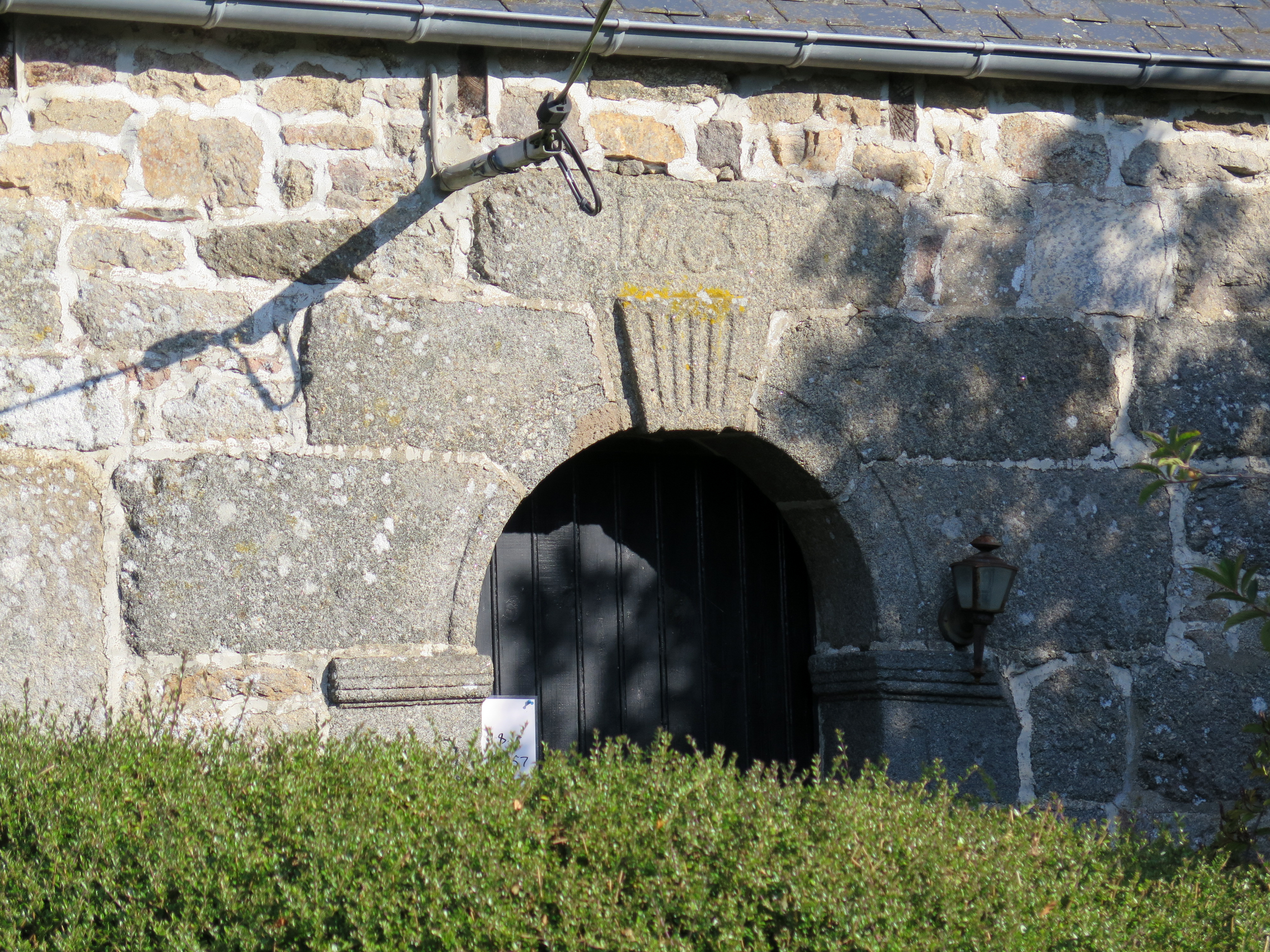 Plouzélambre, Kerouat : logis daté par millésime "1663", élévation sud, détail de la porteImmatriculation