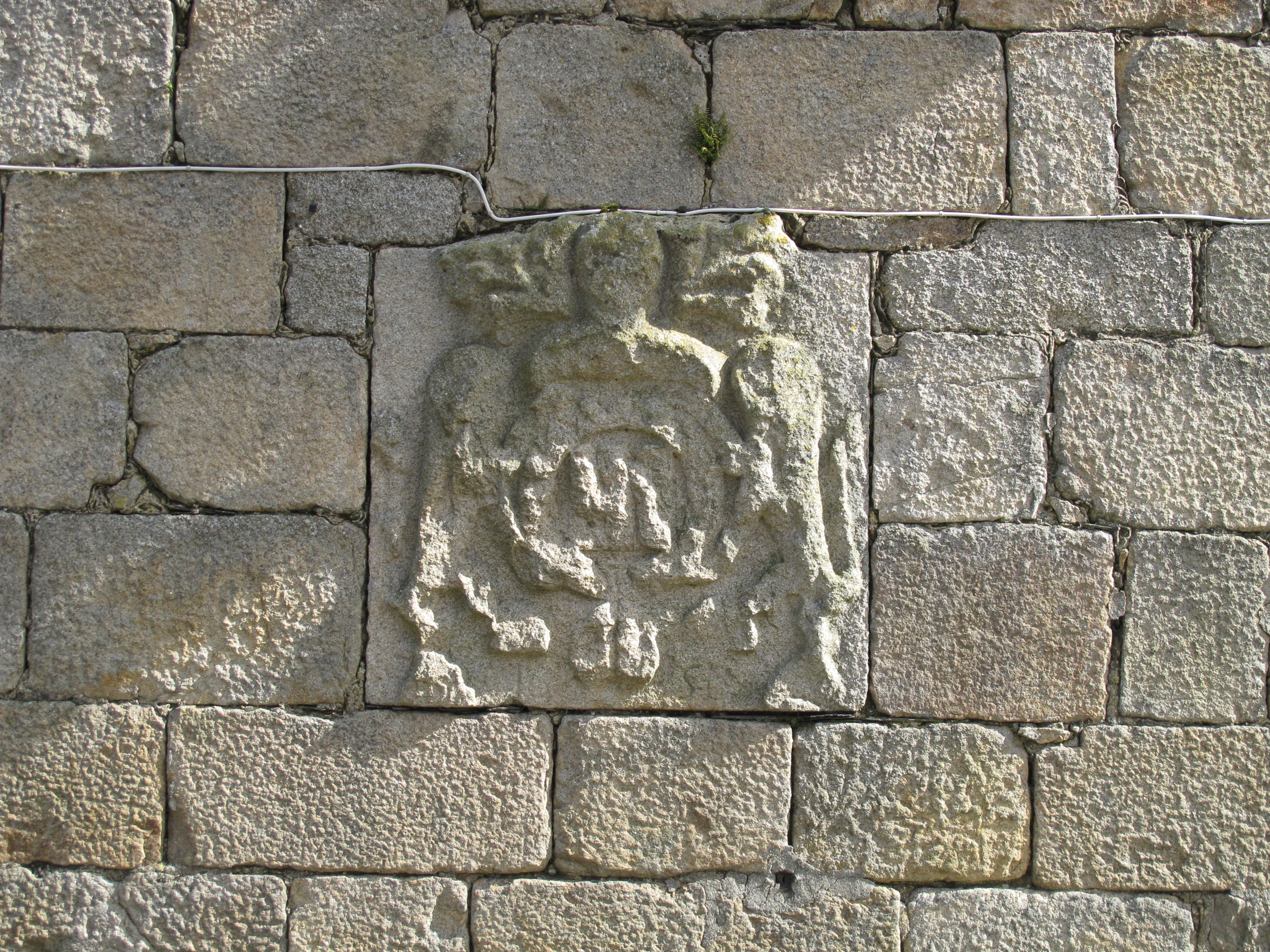 Bourg, rue de Pont-Croix. Blason encastré dans une maison du 17e siècle, état en 2015Immatriculation