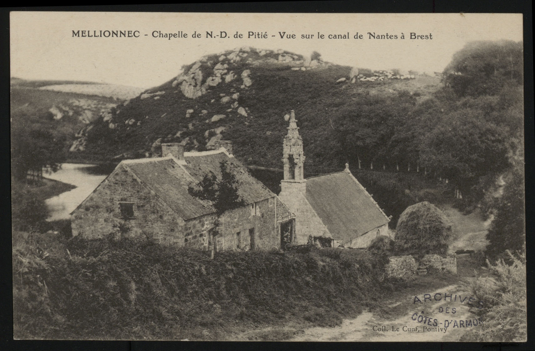 Chapelle Notre-Dame de Pitié. vue sur le canal de Nantes à Brest. Carte postale ancienne, coll. Le Cunf Pontvy. AD Côtes d'Armor 16 Fi 2463_2218Immatriculation