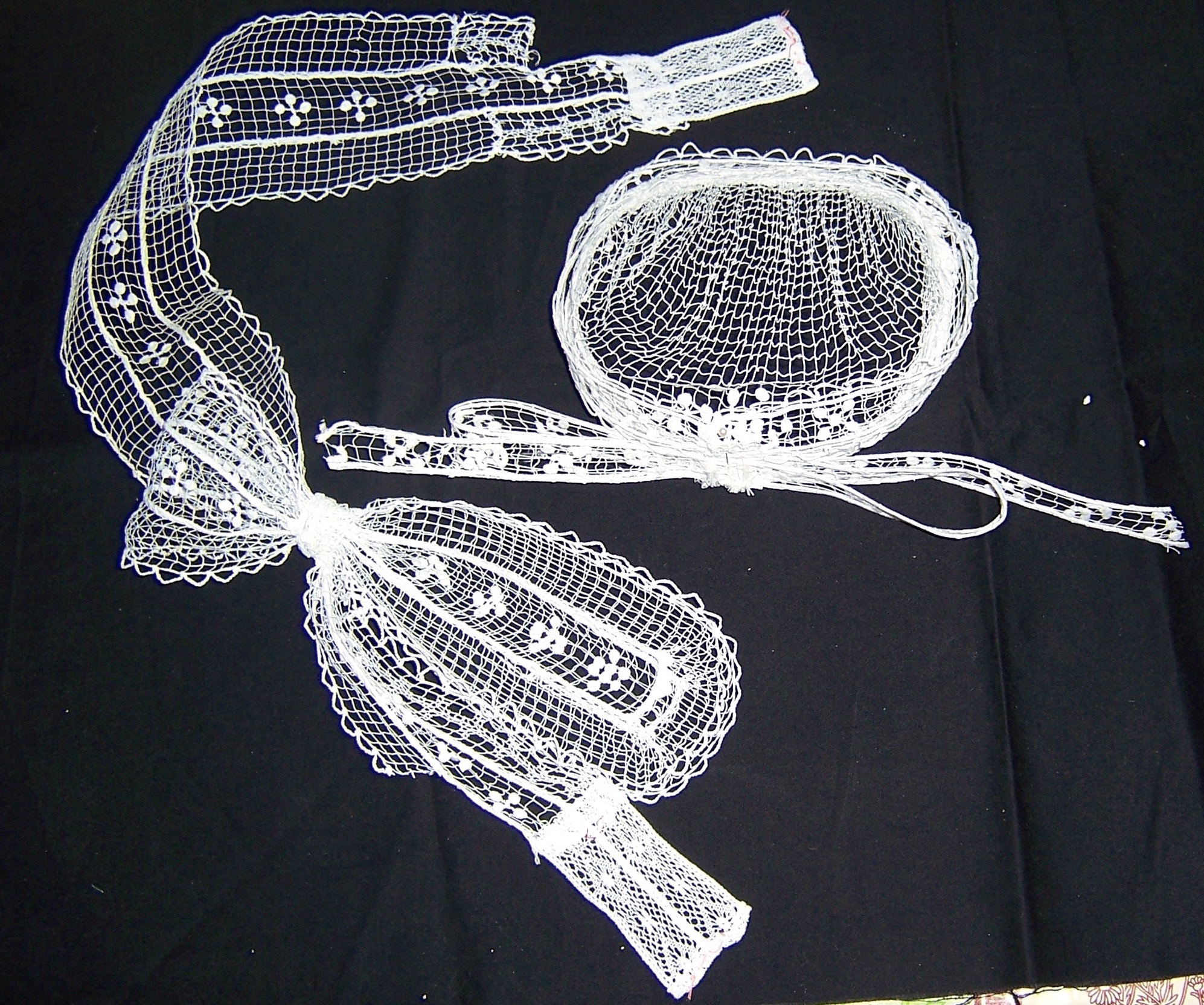 Un après-midi de visionnage, d’une partie de la collection impressionnante de coiffes de Frédéric Raffray d’Yffiniac, nous a permis de découvrir toutes ses composantes. La coiffe est composée d’un fond avec un bavolet, d’une visagière, d’un long lacet libre qui se fixe au ras de la visagière en longeant le fond au niveau du bavolet et en venant former la cocarde à l’arrière de la coiffe, de deux mentonnières qui viennent se nouer sur un des côtés du visage. En dernière mode, ces mentonnières ont disparu.Immatriculation