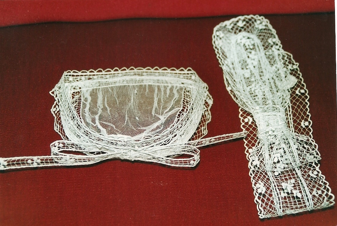 Collectage réalisé à Ploeuc-sur-Lié dans les années 1980 (photographie transmise par Frédéric Raffray) Toutes les coiffes ici ont un fond en tulle. Bavolet, visagière, mentonniéres, lacet pour cocarde sont en filetImmatriculation