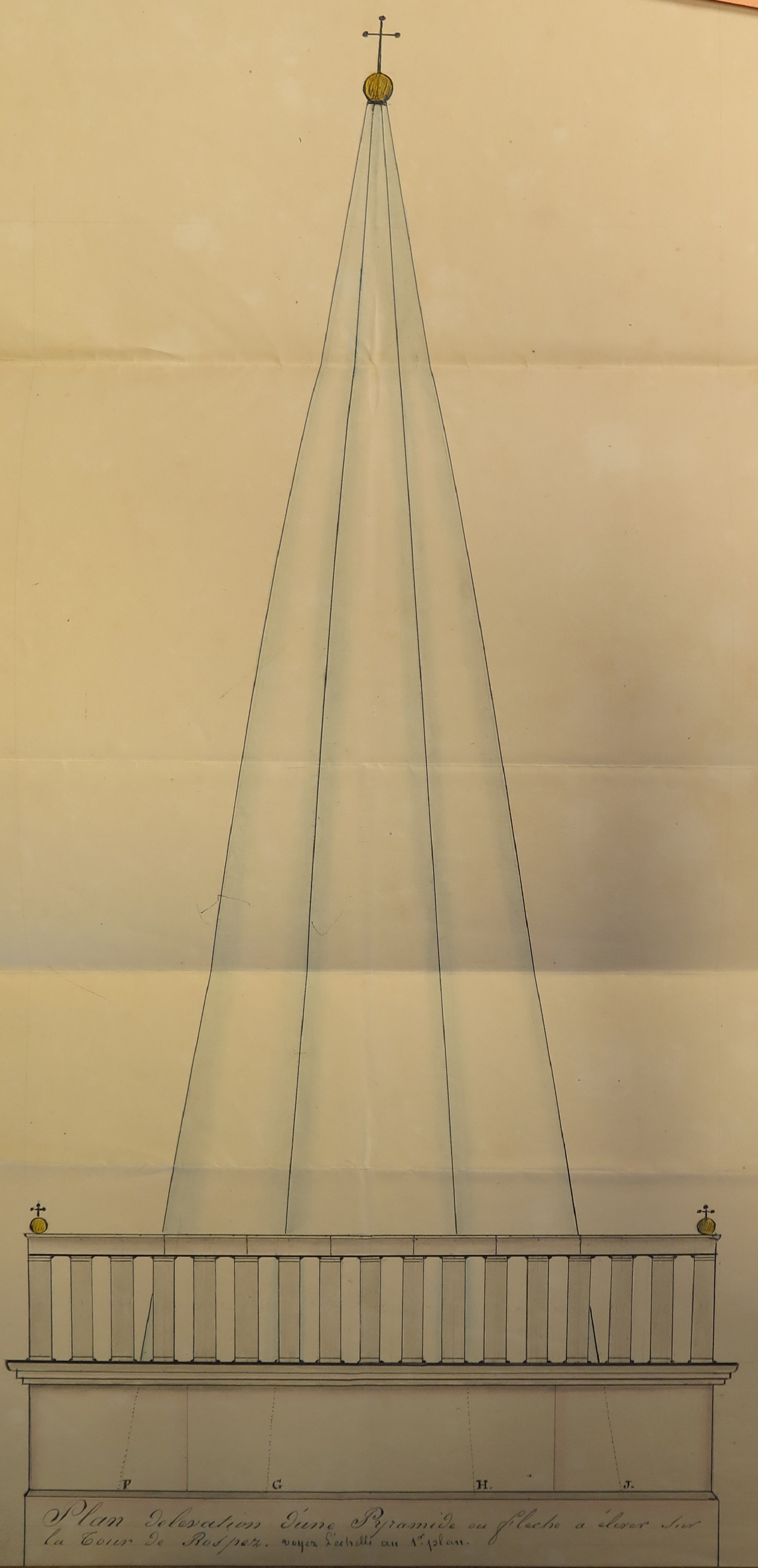 Rospez, le bourg : église paroissiale, projet de flèche pour le clocher de l'église en 1836 (sources : Archives départementales des Côtes d'Armor)Immatriculation